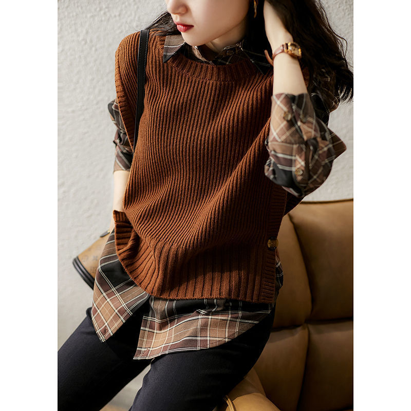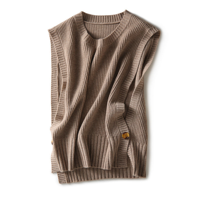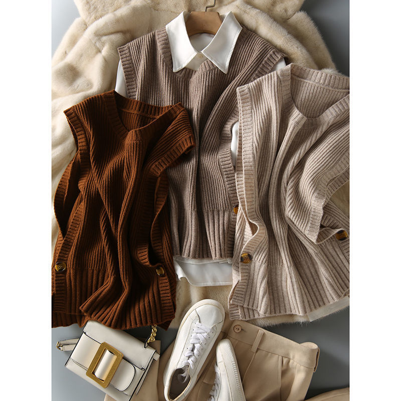 Japanese-Style Round Neck Solid Color Ribbed Slimming Knit Vest For Women Autumn And Winter Fashion Single-Button Vest