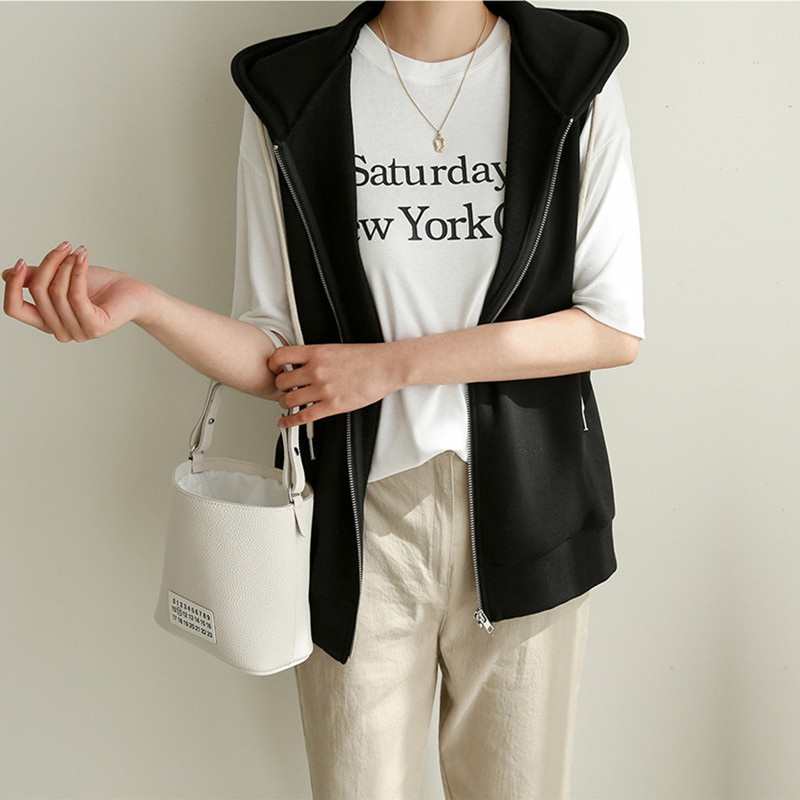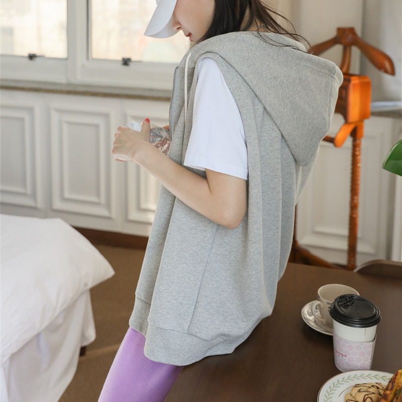 Spring Japanese Hooded Sweater Sleeveless Vest All-match Vest Women's Korean-style Slimming Thickened Vest Jacket