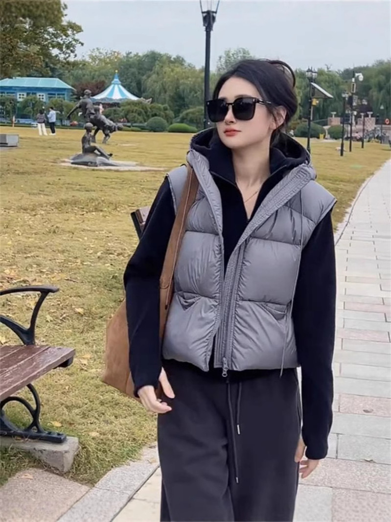 Hooded Down Cotton Vest For Women Winter Style Warm, Light, Fashionable And Versatile Waistcoat, Loose And Slim