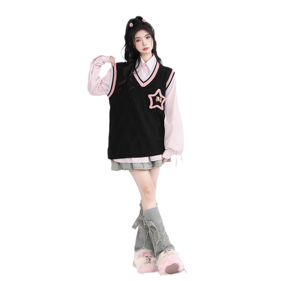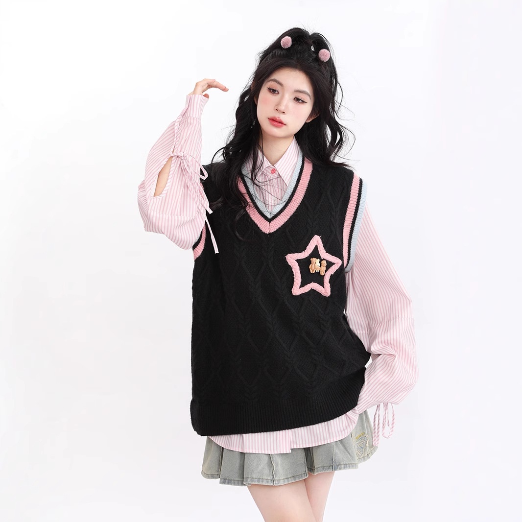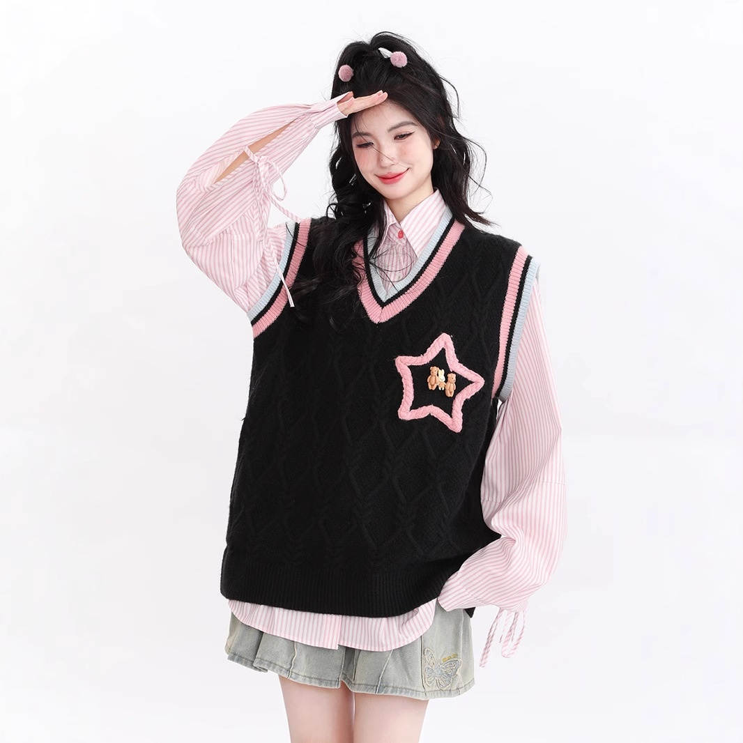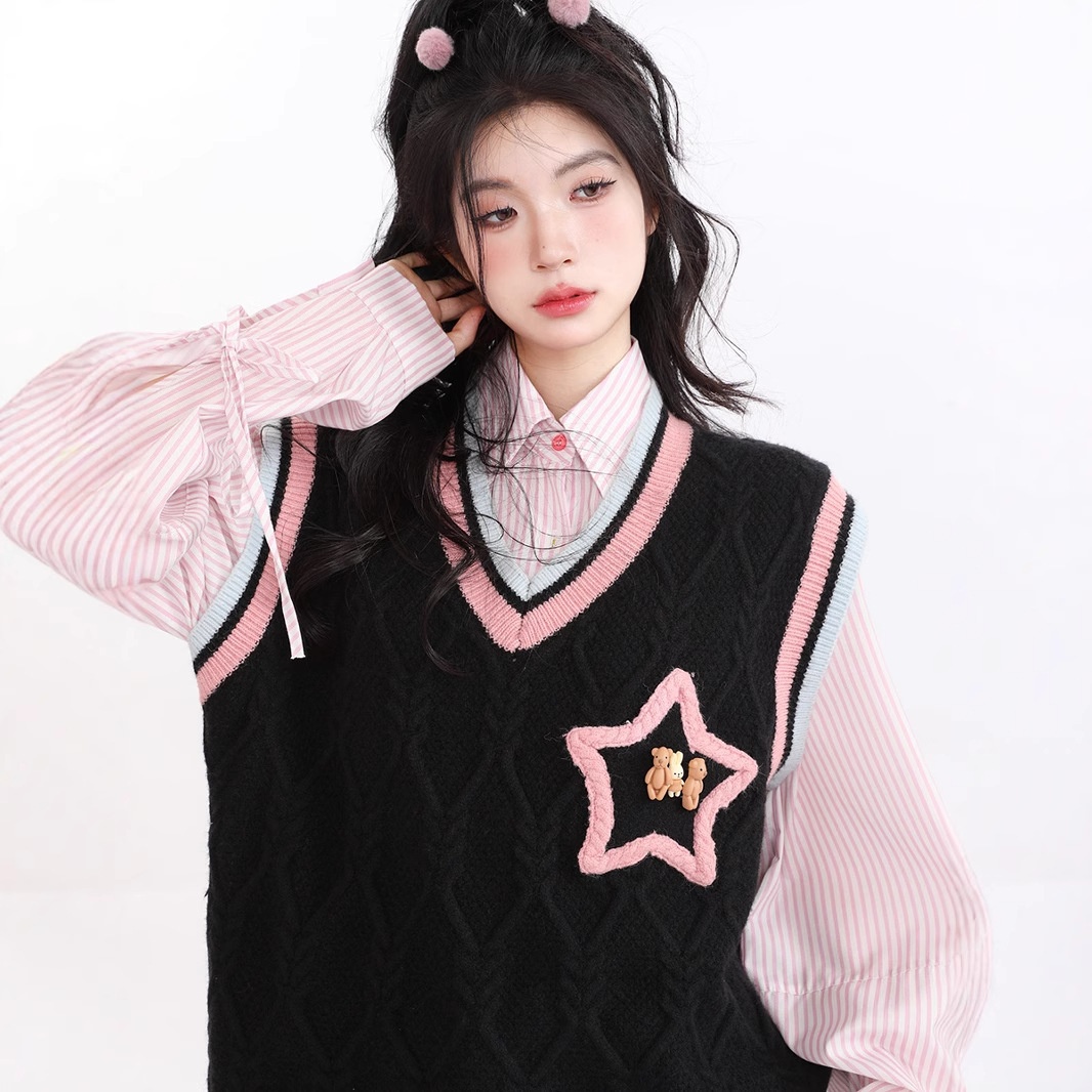 American Retro Academy Style Star Color Matching Niche Design Soft Waxy All-match Sweet Girl Warm Vest