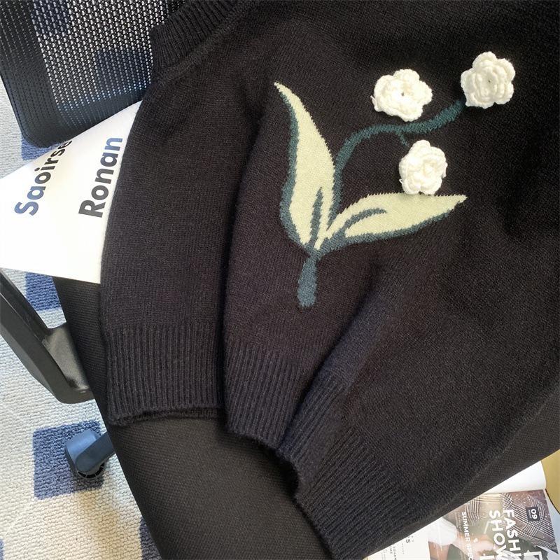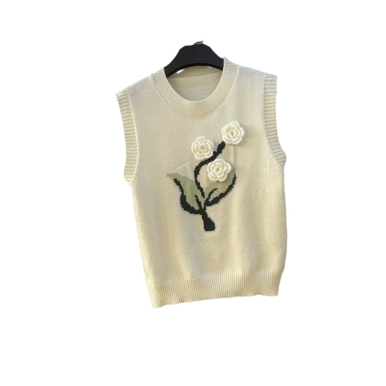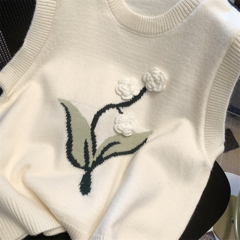 Autumn And Winter Three-Dimensional Flower Knitted Vest Korean Style Loose Slimming Sweet Age-Reducing Sweater For Women
