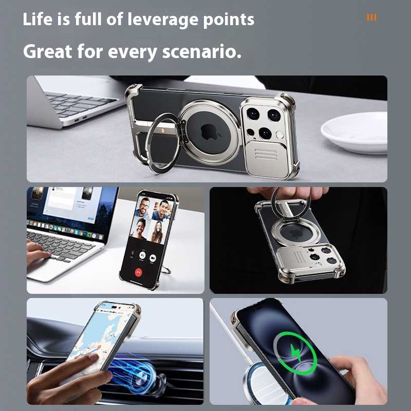 Suitable For Apple 1516promax Slide Cover Protection Lens 360 Degree Rotating Bracket Magnetic Absorption Mobile Phone Case Without Frame