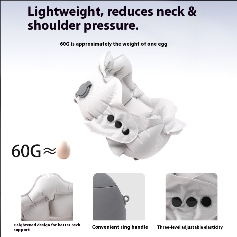 Inflatable U-Shaped Pillow, Summer Ice Silk Cervical Spine Pillow, Anti-Bowing Mouth Blowing Neck Pillow, Travel Portable Neck Pillow With