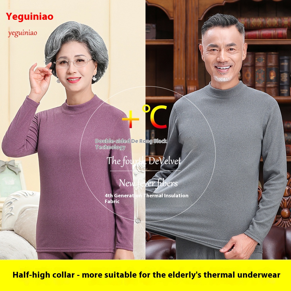 Middle-aged And Elderly Thermal Underwear Women's Semi-high Collar Mother's Pajamas Bottoming Shirt Autumn Clothes Long Pants For The Elderly Suit Men