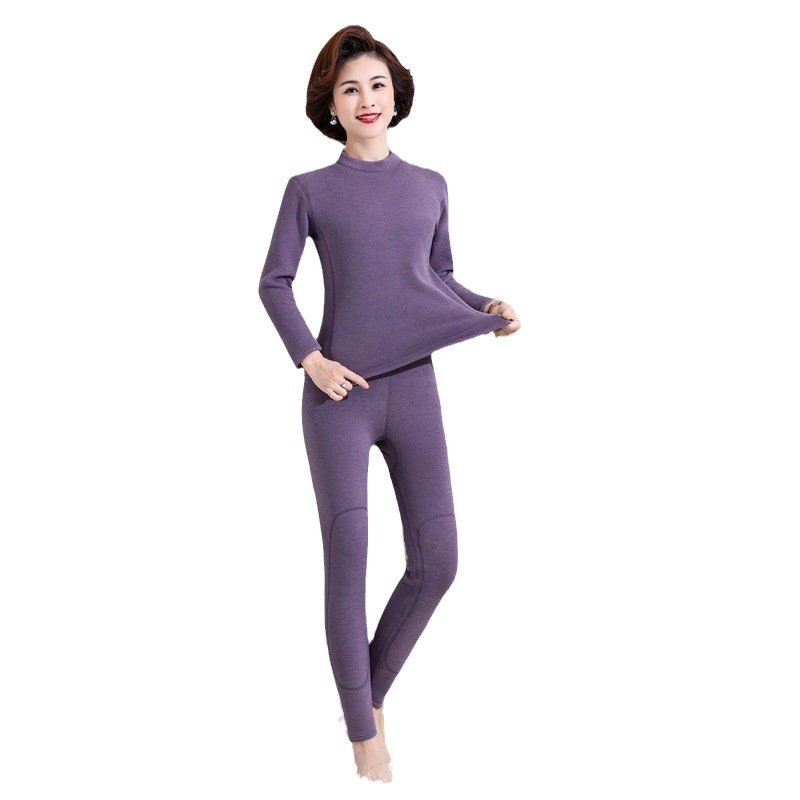 Middle-aged And Elderly Thermal Underwear Cashmere Silk Patch Suit Female Thickened Fleece-lined Mother Mid Collar Slim Waist Support Base
