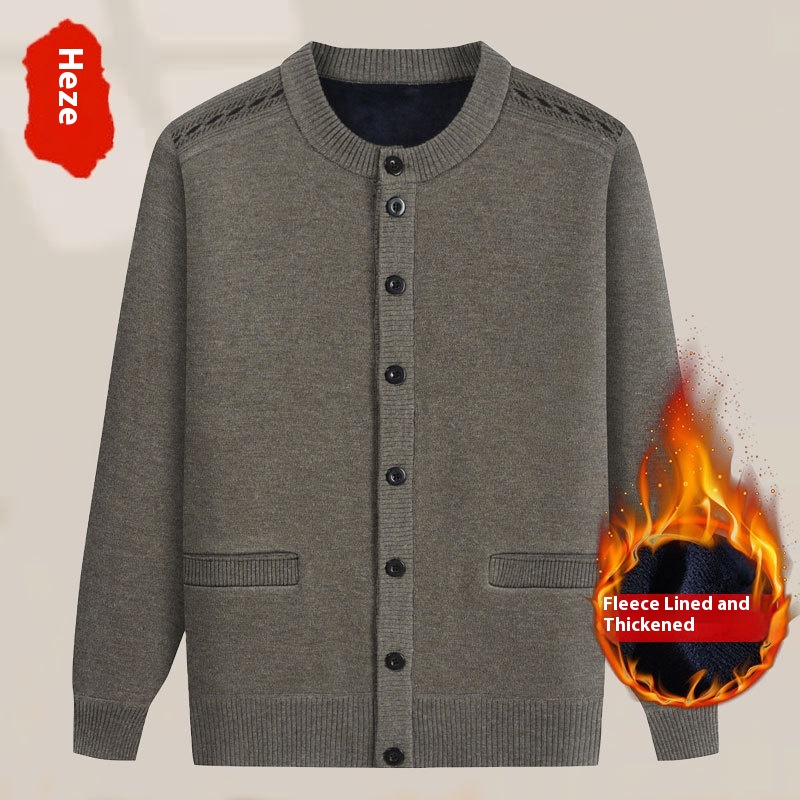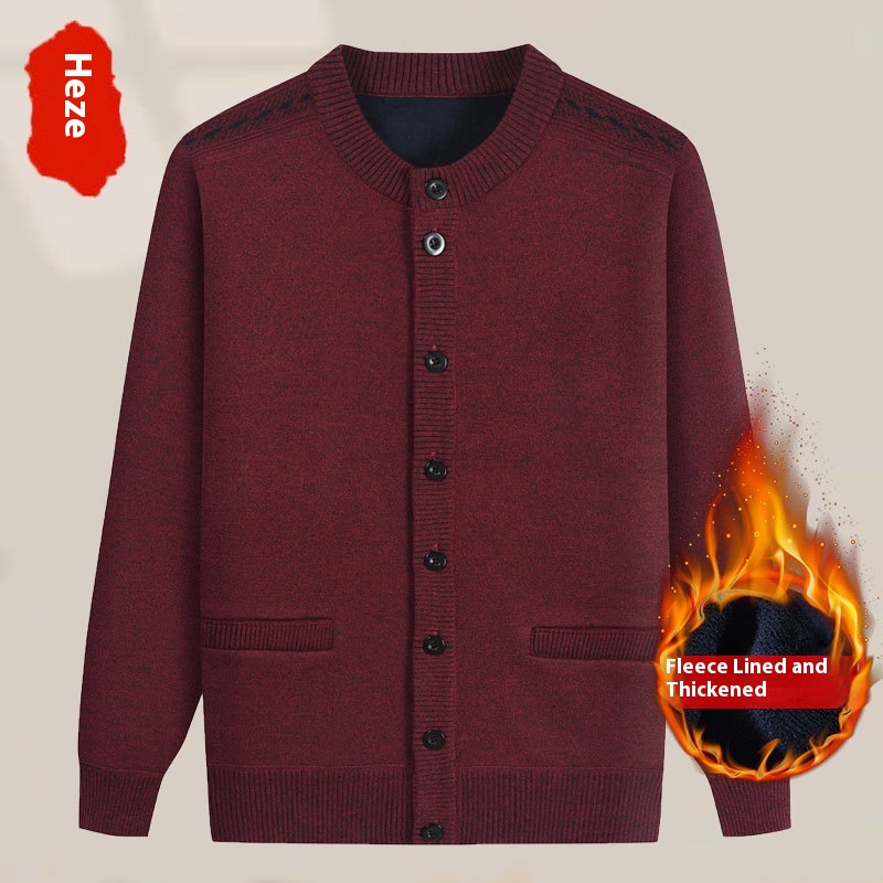 Middle-aged Dad Cardigan Sweater Autumn And Winter Warm Knitted Sweater Grandpa Thickened Velvet Jacket Men's Clothes For The Elderly