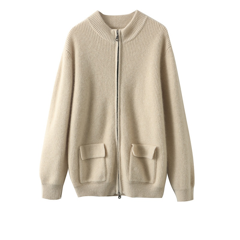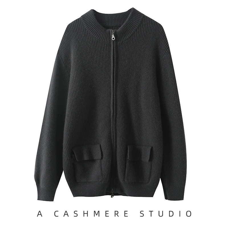 Autumn And Winter 100% Pure Cashmere Men's Half Turtleneck Zipper Cardigan Knitwear Short Jacket