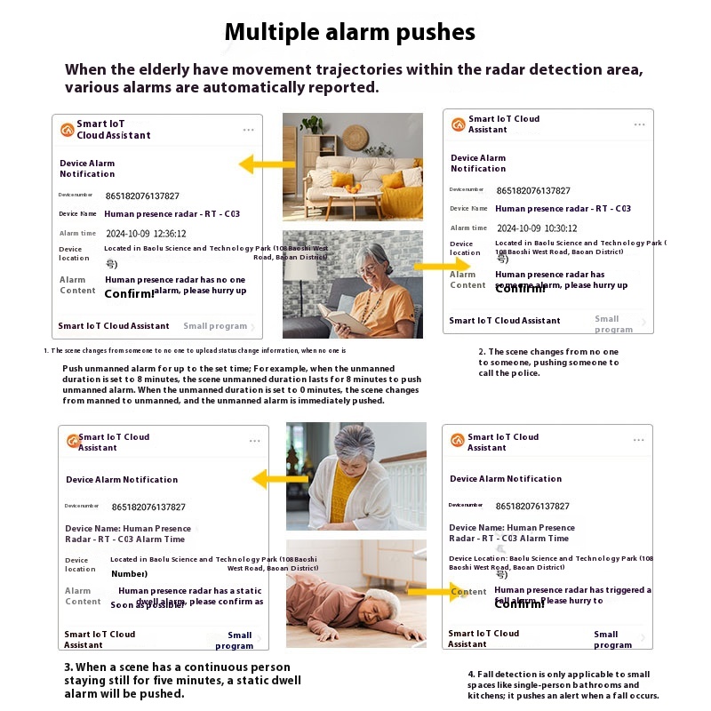 Suitable For Aging Modification 60g Mm Wave Radar Elderly Fall Alarm Long-Lasting Home Dusk Fan Activity Detector