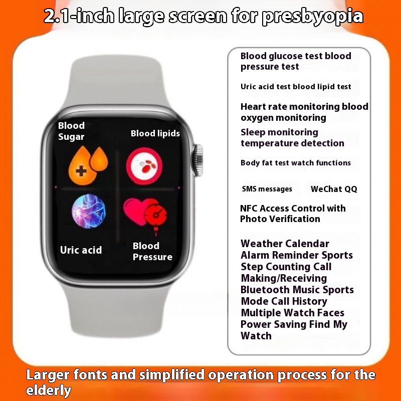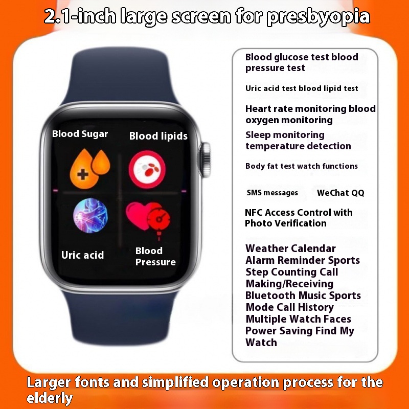 Smart Watch Imported Universal Accurate Blood Sugar Uric Acid Blood Pressure Heart Rate Sleep Monitoring Bracelet For The Elderly
