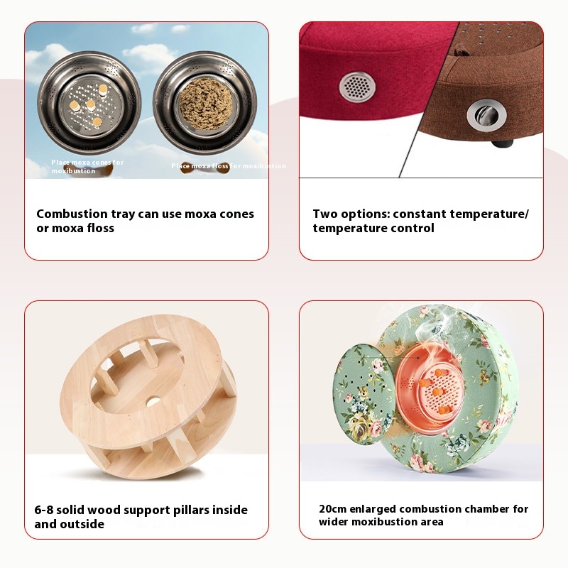 Household Smokeless Temperature Control Moxibustion Futon Solid Wood Moxibustion Box Yoga Cushion Moxa Fumigation Stool Sitting Moxibustion Apparatus Moxibustion Stool