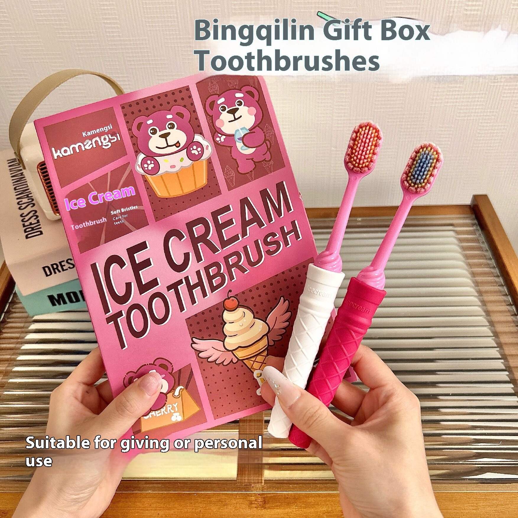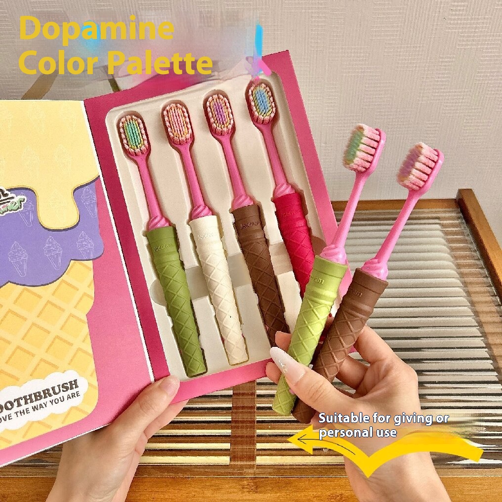 4支礼盒装冰淇淋宽头凸面成人软毛牙刷护龈洁齿家用情侣小头清洁