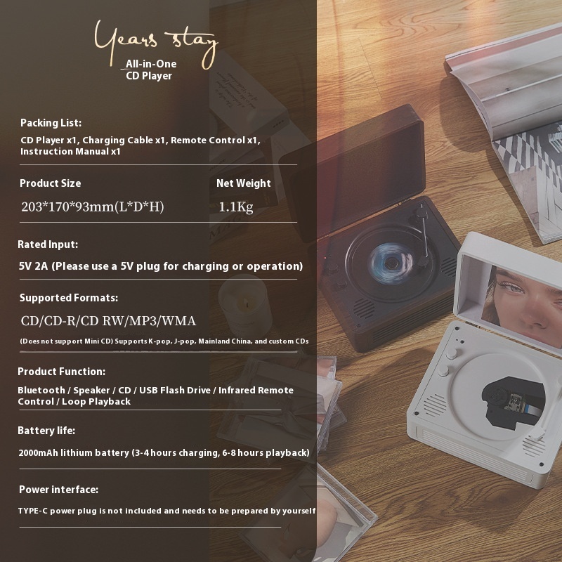 Album CD Player Retro Bluetooth Integrated Audio Music Disc