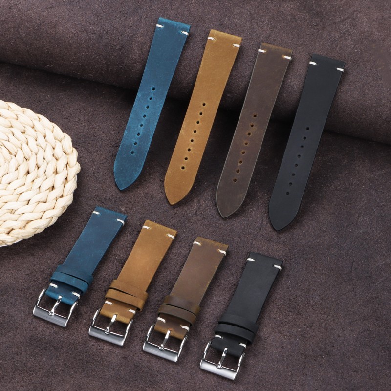 Vintage Crazy Horse Genuine Leather Strap Huawei Samsung Universal Oil Wax Leather Watch With Solid Buckle 18/20/22mm