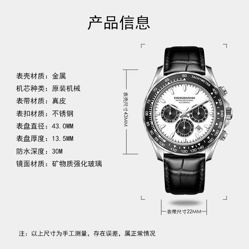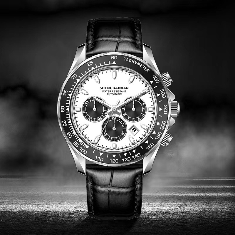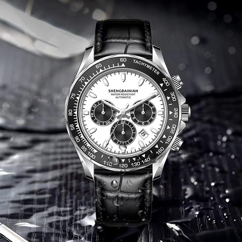 Three-eye Six-pin Panda Multi-function Automatic Mechanical Men's Watch Sports Luminous Waterproof Leather High School Student
