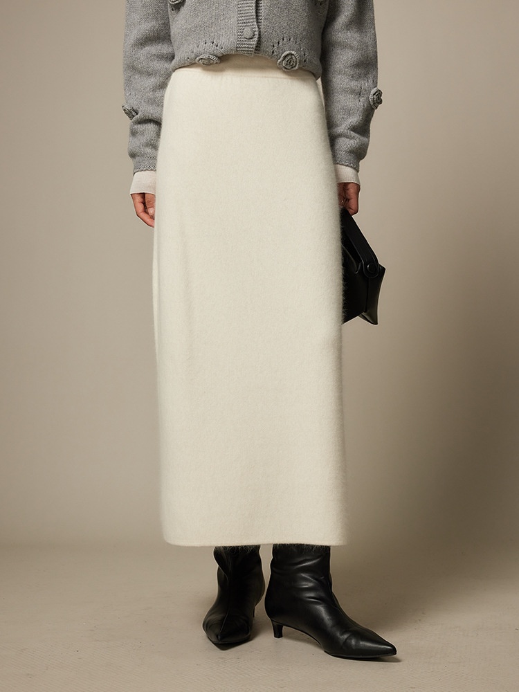 A Pair Of Winter Gg Heavy Raccoon Velvet Wool Skirt For Women Autumn And Winter Pure Color Hip-Covering Knitted Skirt
