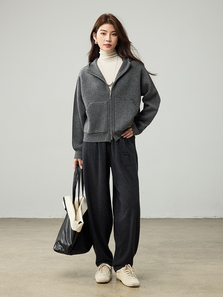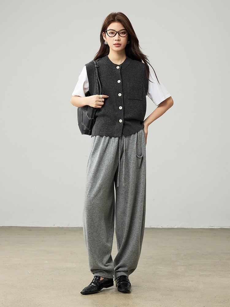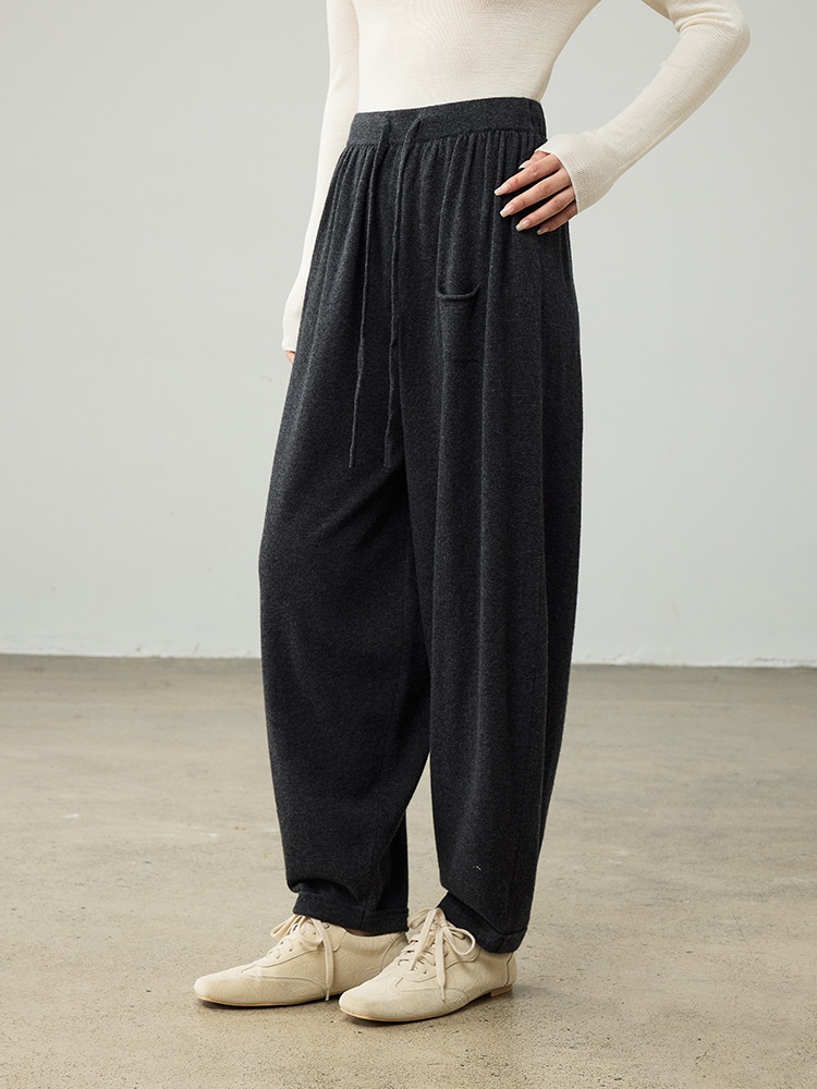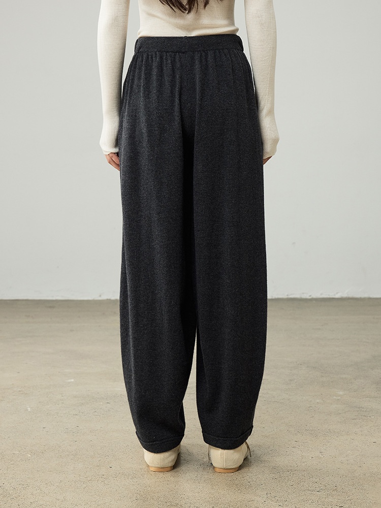 鬆弛感100%羊毛褲繭型闊腿褲針織燈籠褲子