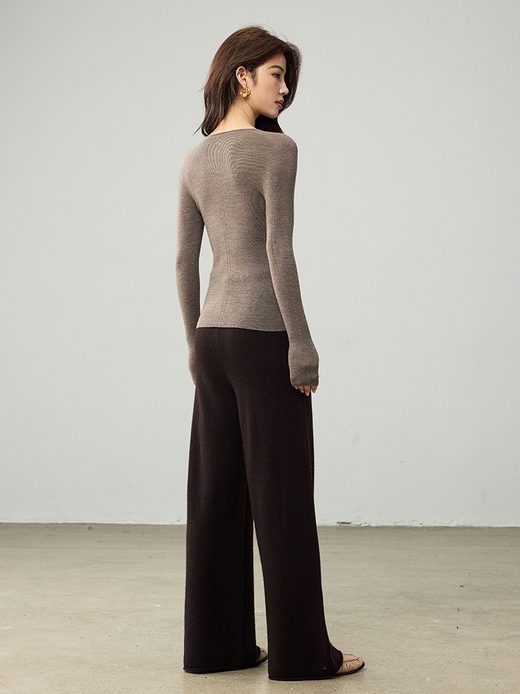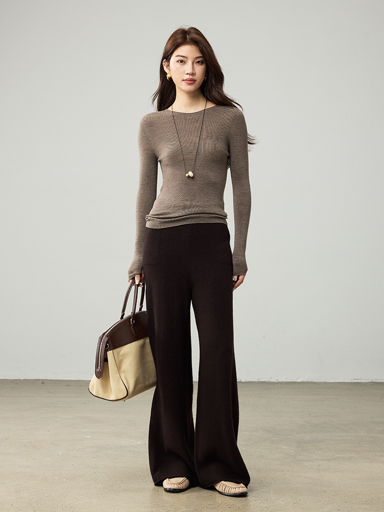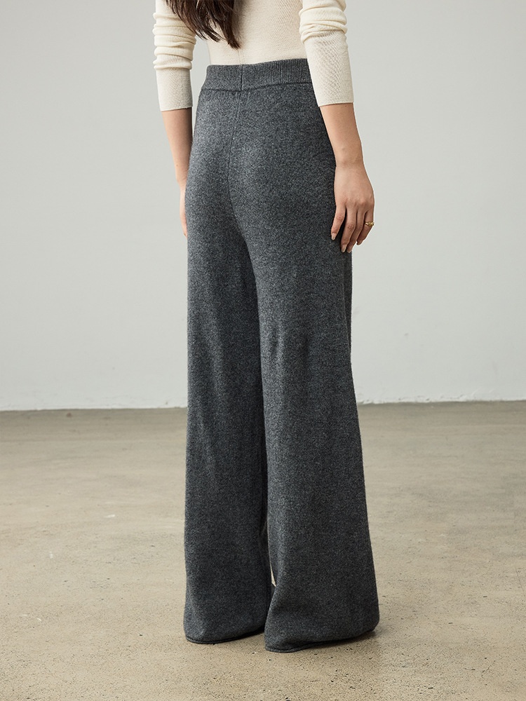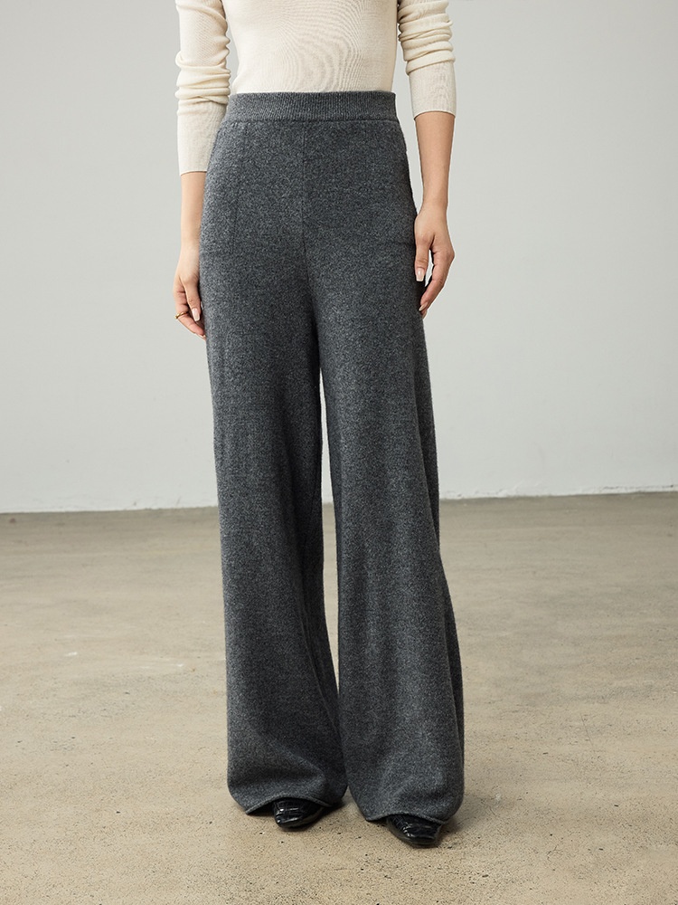 Autumn And Winter Cashmere Knitted Wide-leg Pants For Women High Waist Drape High-end Slim Thickened Floor-length Casual Pants For Outer Wear