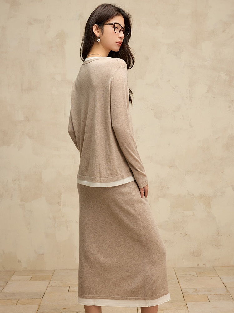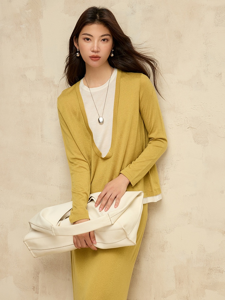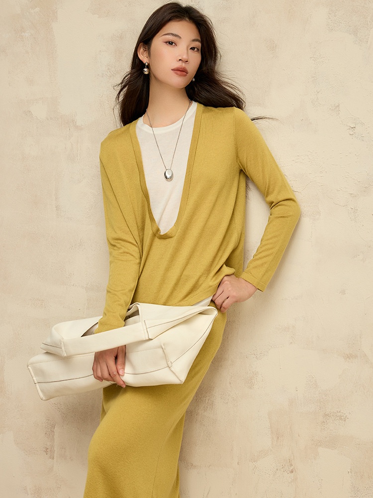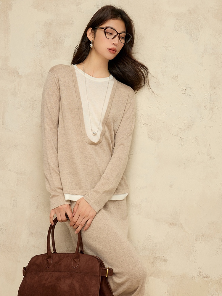 U-neck Wool Sweater Long-sleeved Base Shirt Loose Sweater