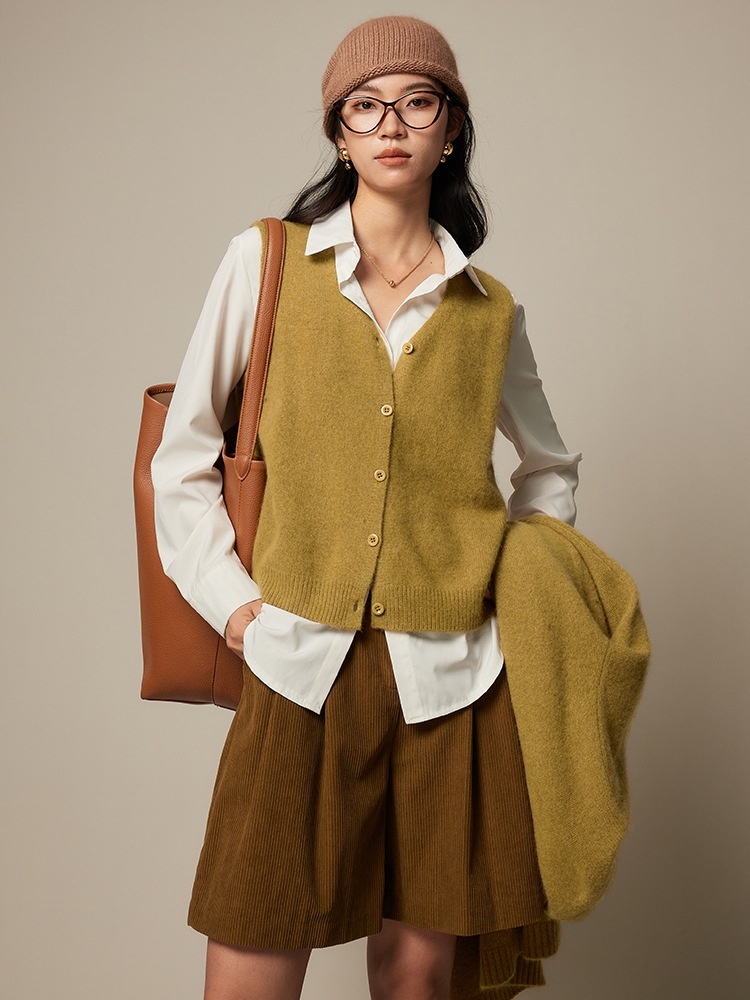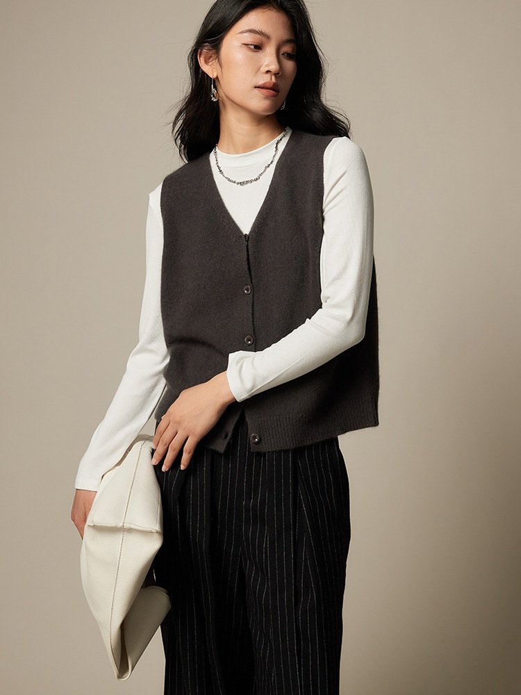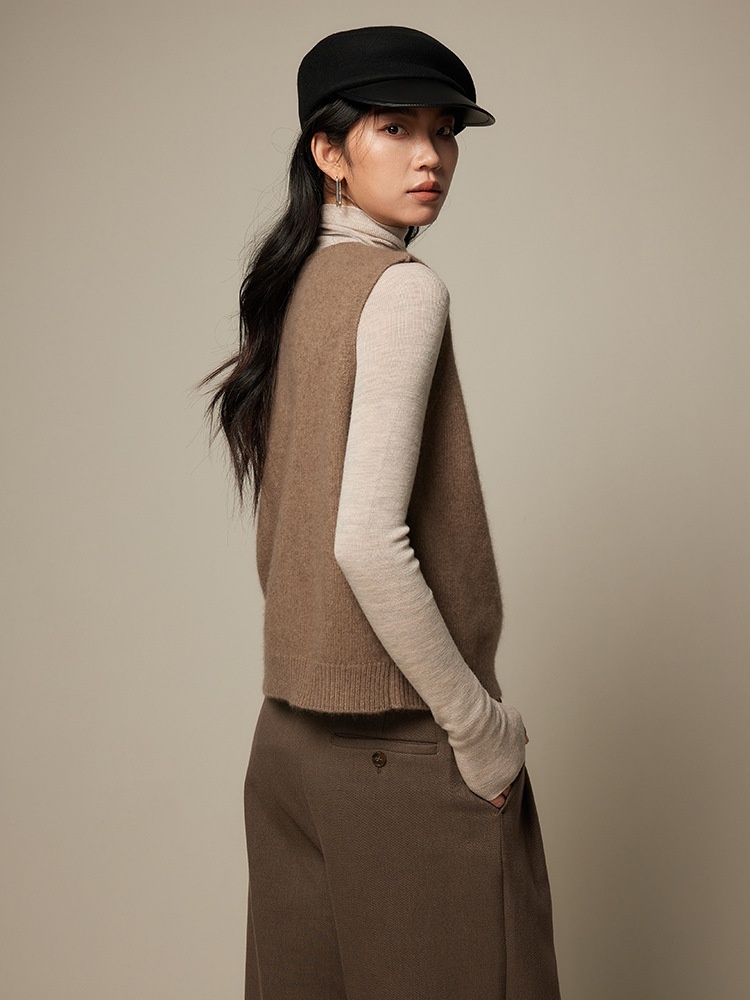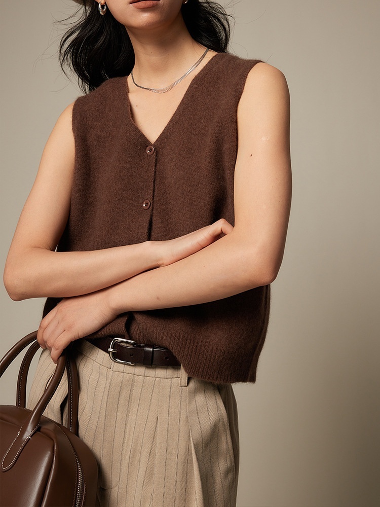 Raccoon Fleece Knitted Vest Vest Jacket V-Neck Single-Breasted Sleeveless Wool Cardigan