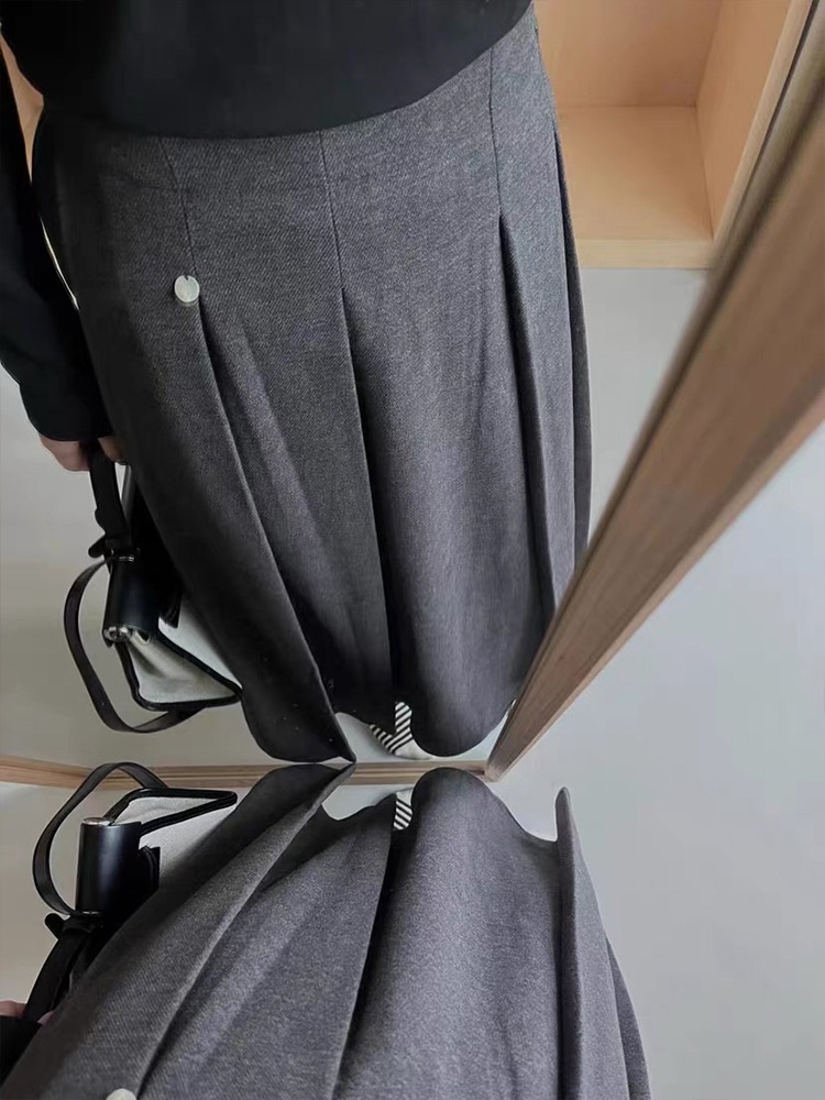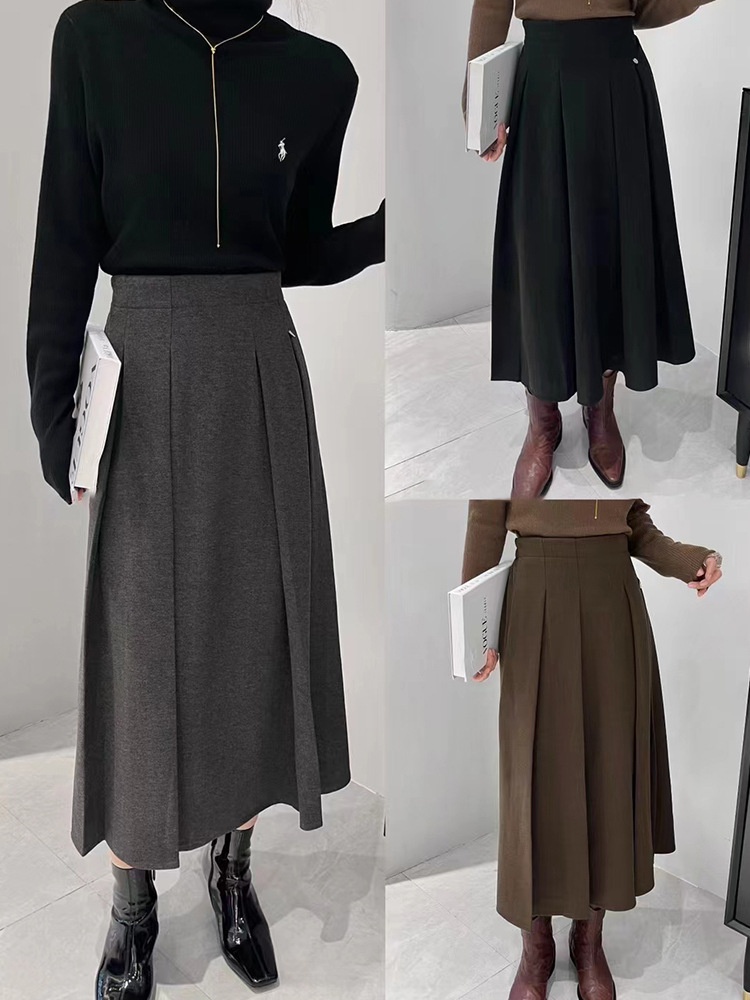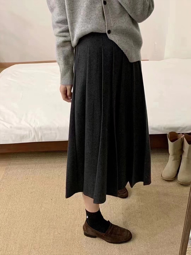 Semi-elastic Woolen Fabric High Waist Pleated Midi Skirt
