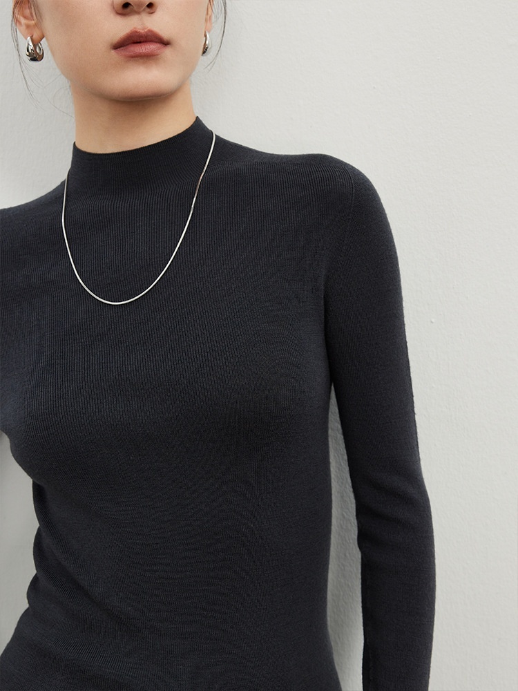Worsted Wool Seamless Sweater For Women, Half Turtleneck Bottoming Shirt