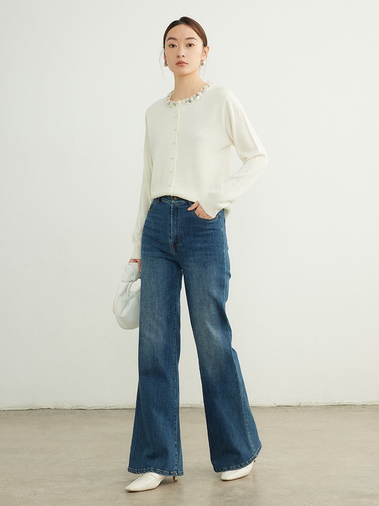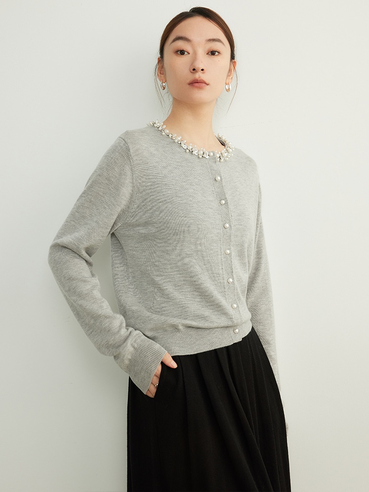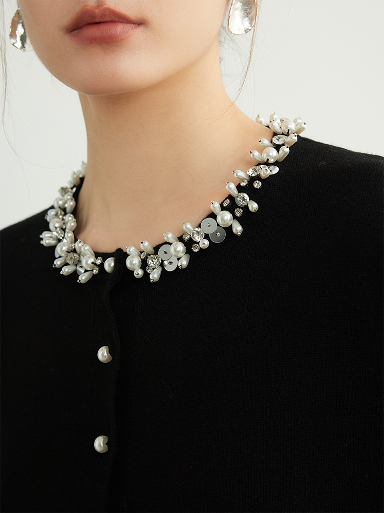Knitted Beaded Wool Cardigan Thin Sweater Jacket