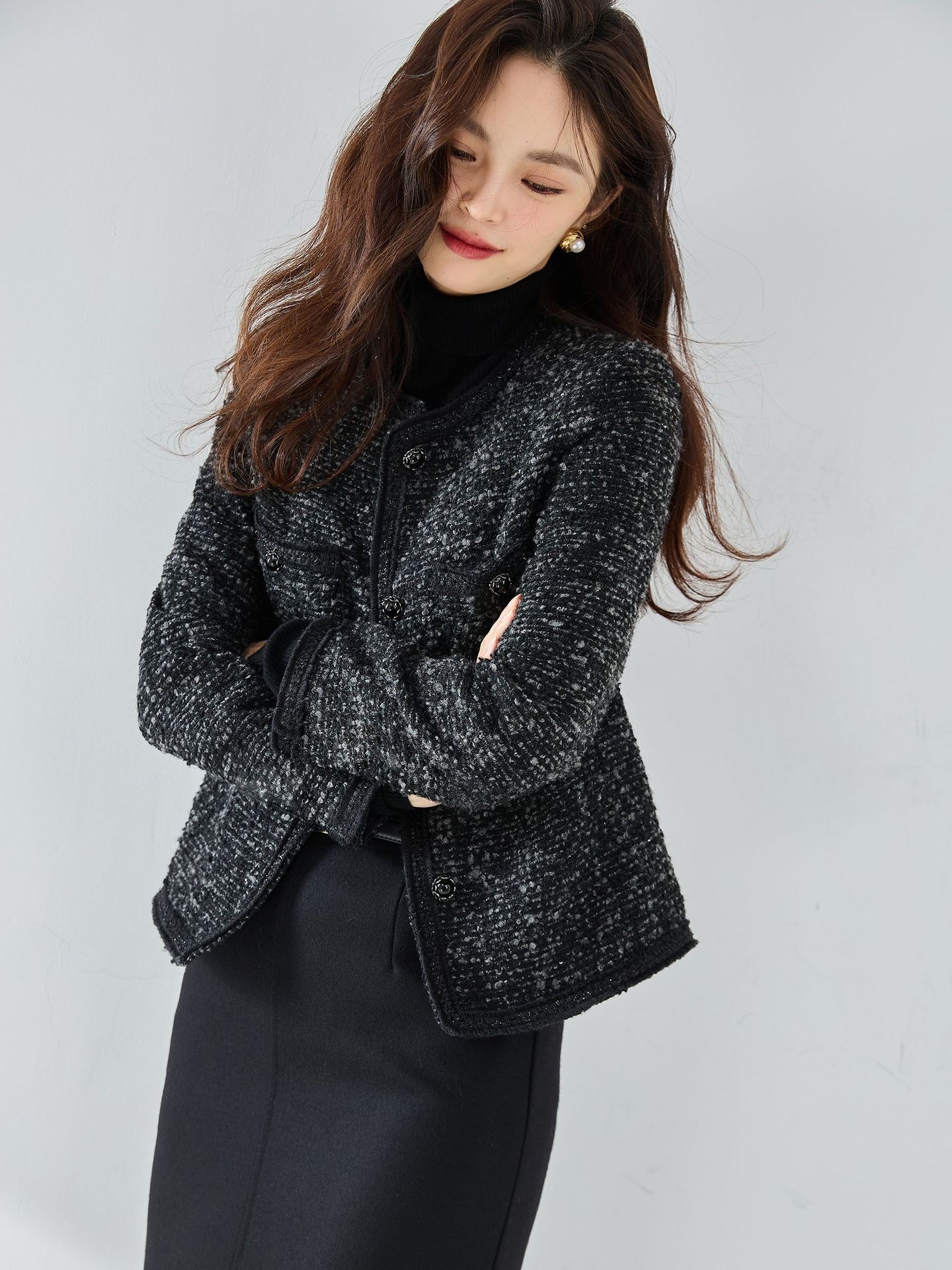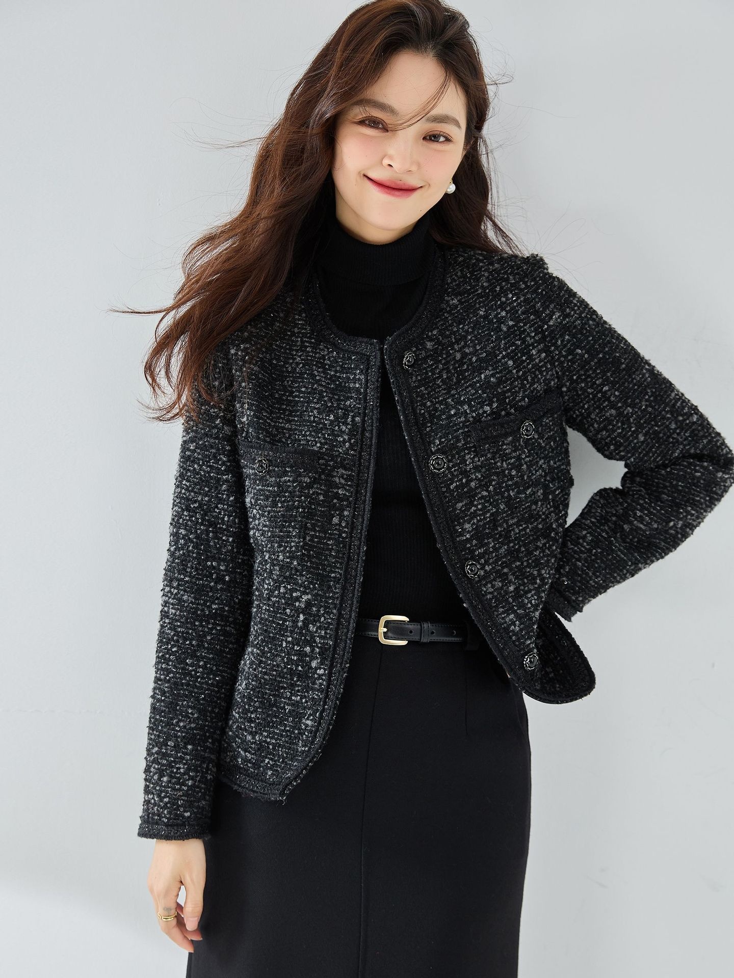 Black Boucle Wool Tweed Jacket