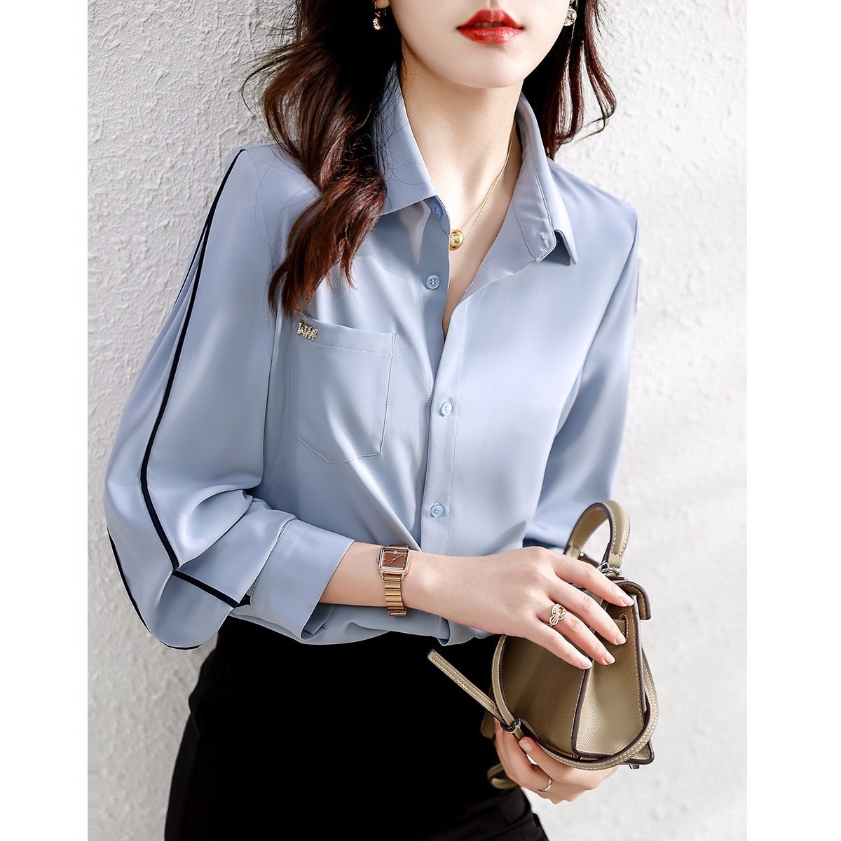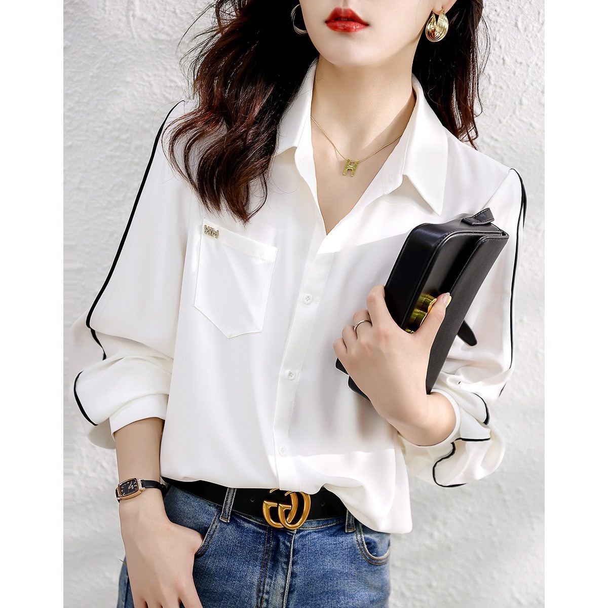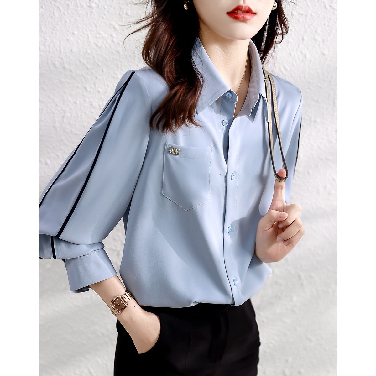 Temperament Contrasting Color Line Design Shirt