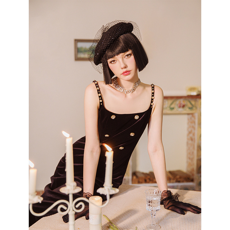 In Stock Gourcuff Women's Dress 25 Summer Party Birthday Dress Sling Velvet Dress Dress