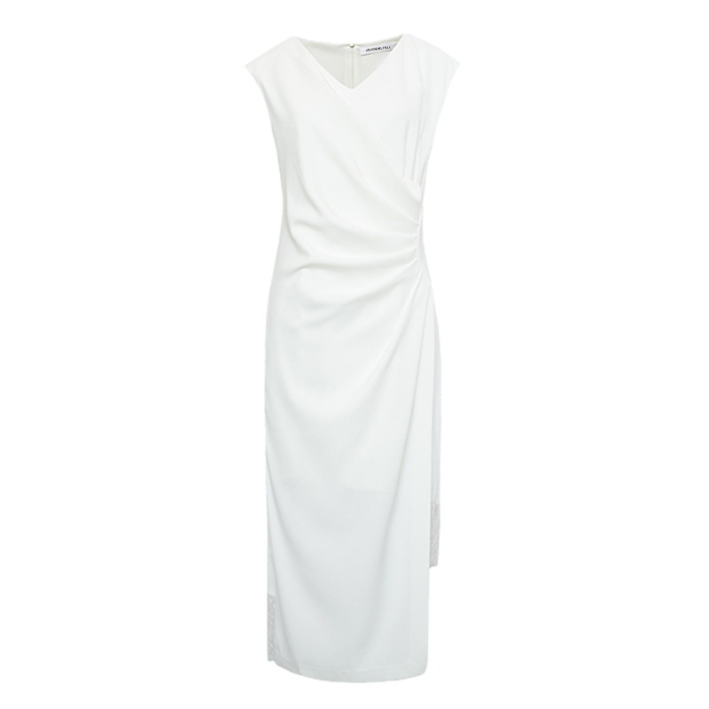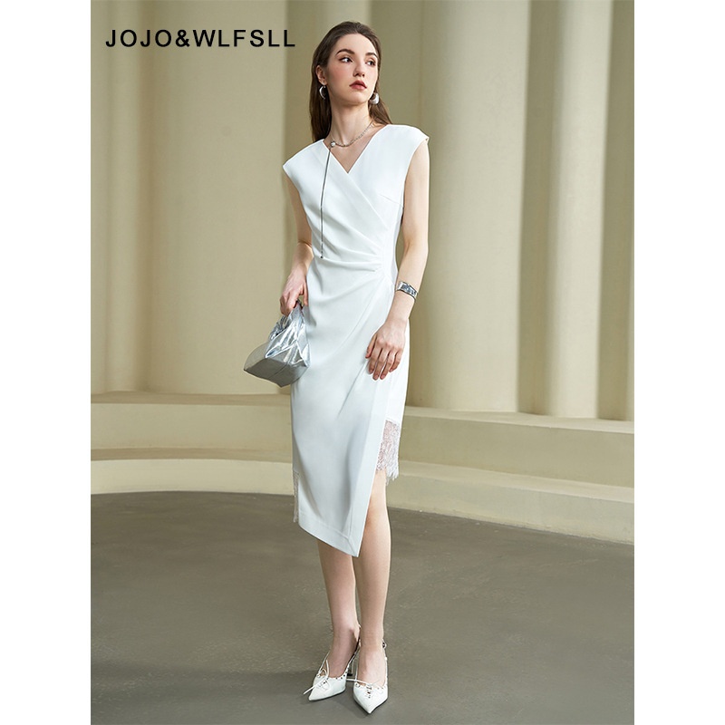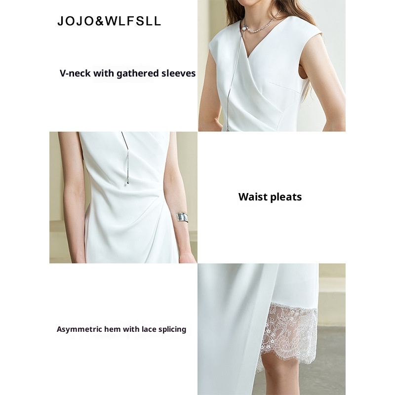 V-neck, Gathered Waist, Lace-trimmed Sleeveless Dress