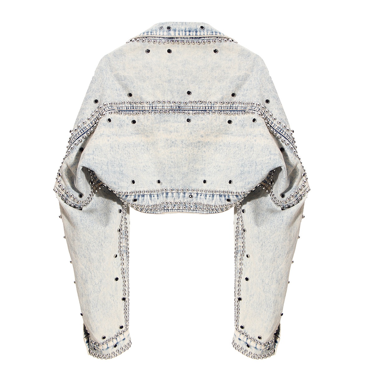 Shawl-style Denim Jacket, Short Jacket, Loose Long-sleeved Heavy-duty Studded Thin Denim Top