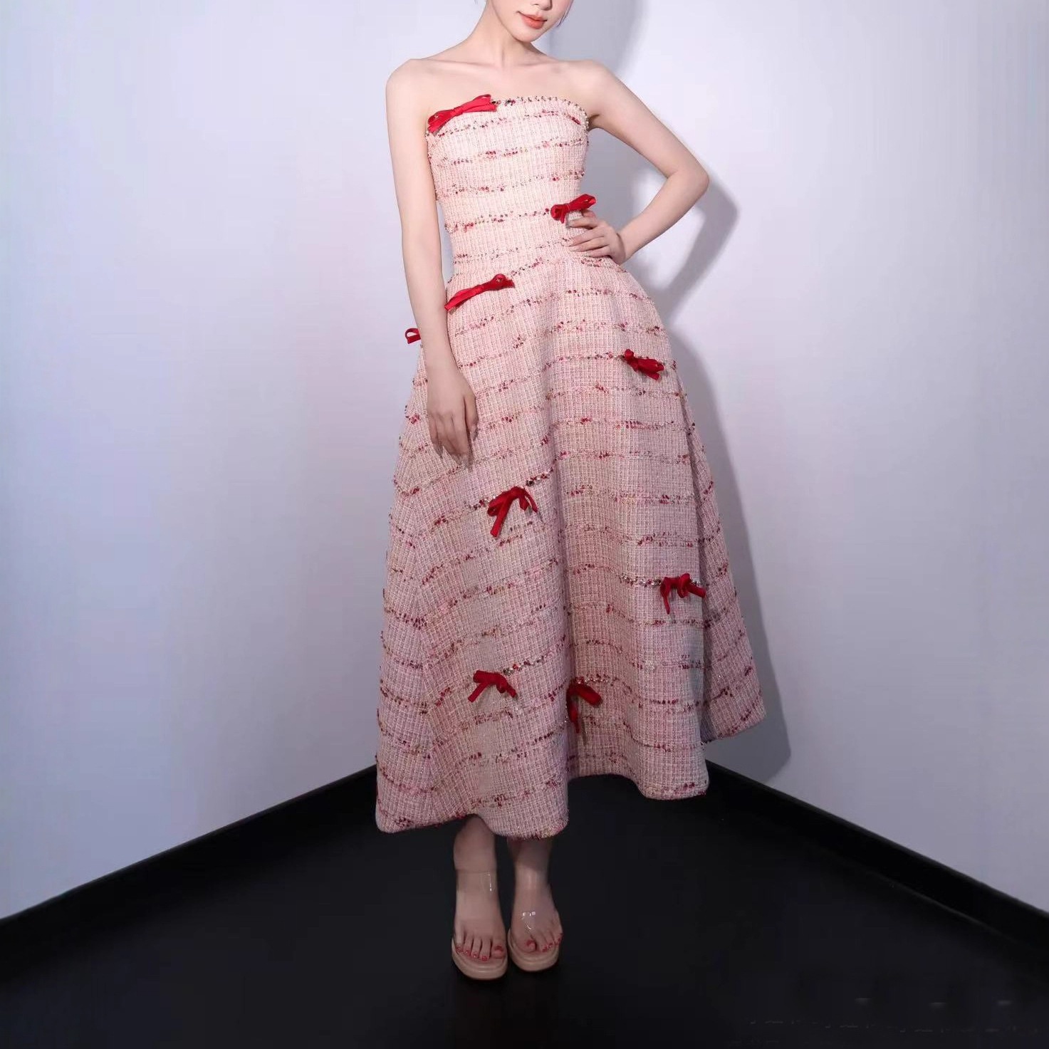 Pink Chanel-style Evening Gown