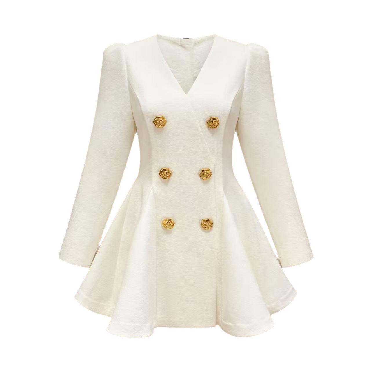Sophisticated And Elegant V-neck Long-sleeved Gold-button Textured Waist-cinching Slimming Suit Skirt