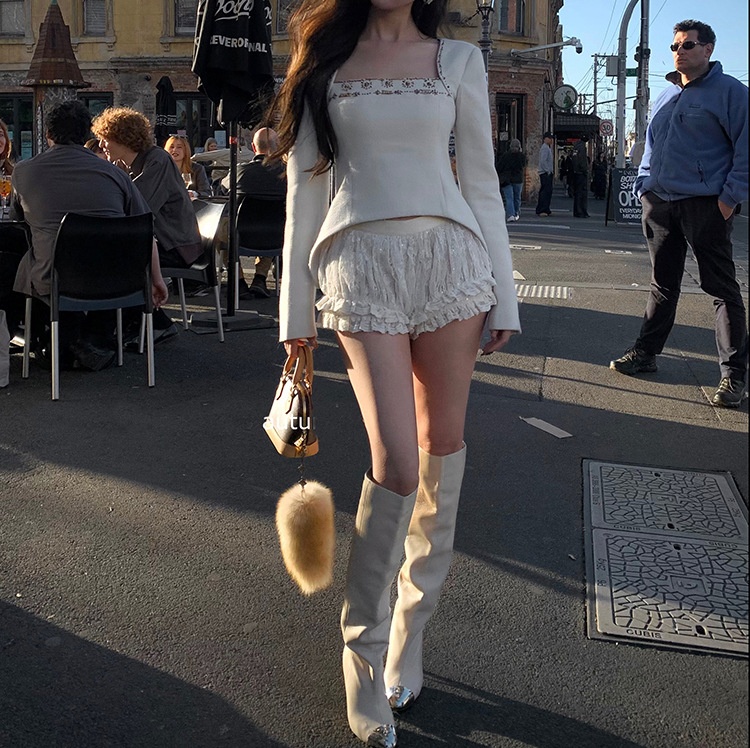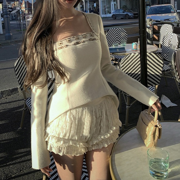 Cream-white, Heavily Handcrafted, Beaded, Fitted, Luxurious Chanel-style Wool Coat