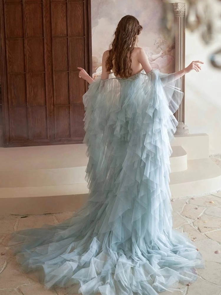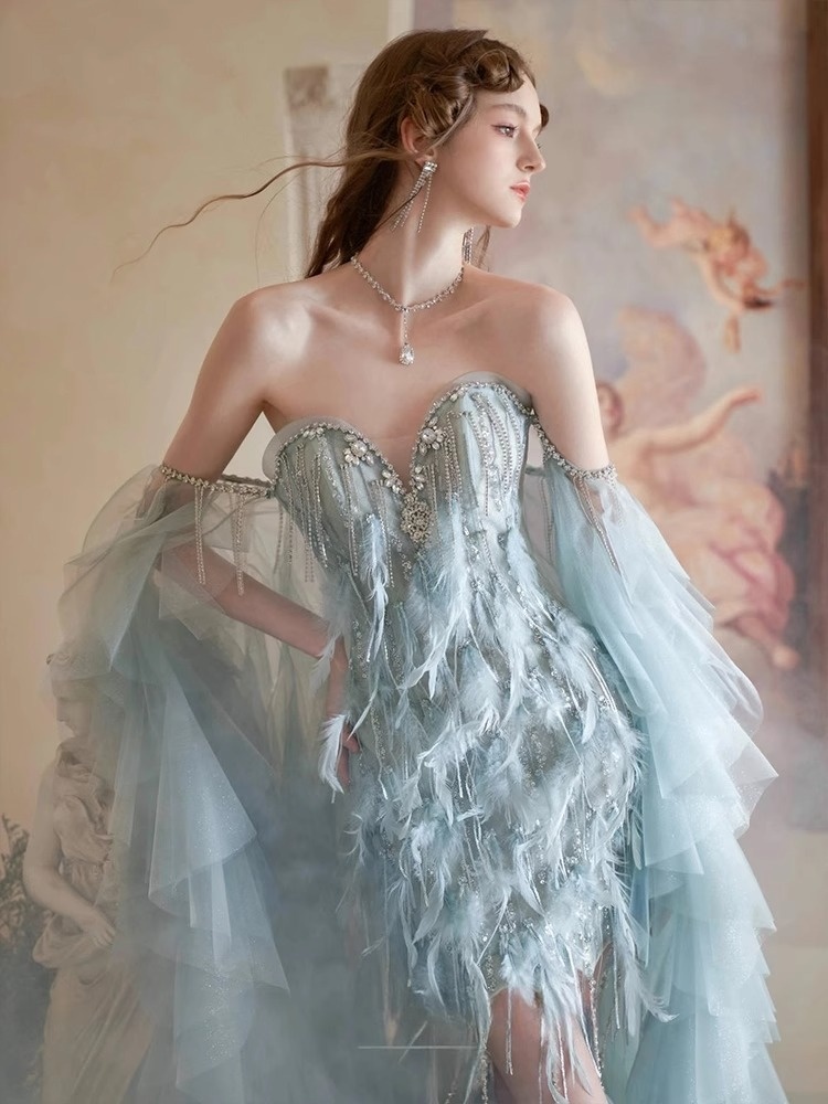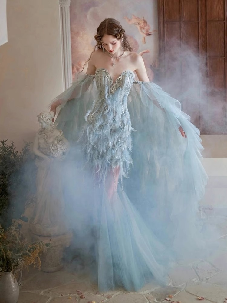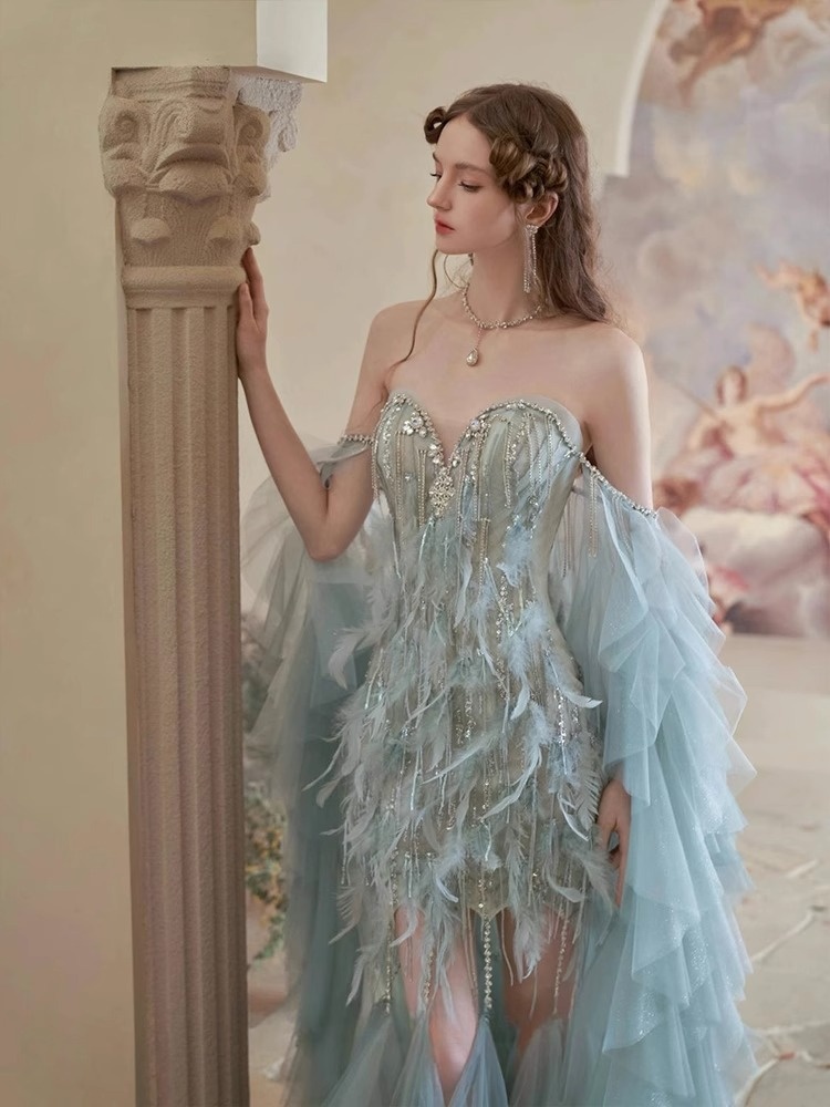 Blue Feather Evening Gown