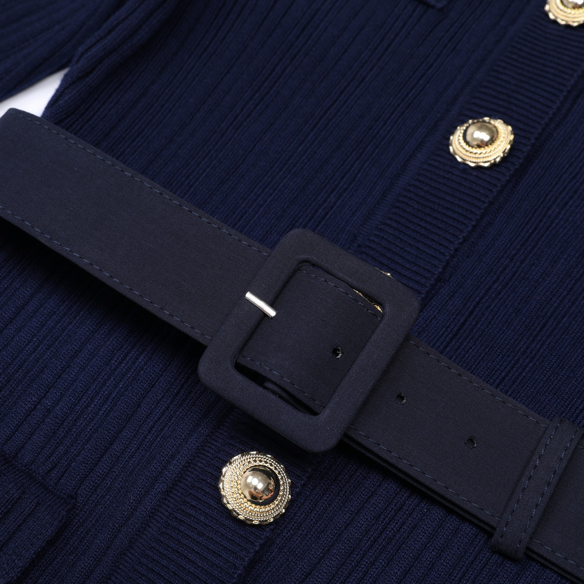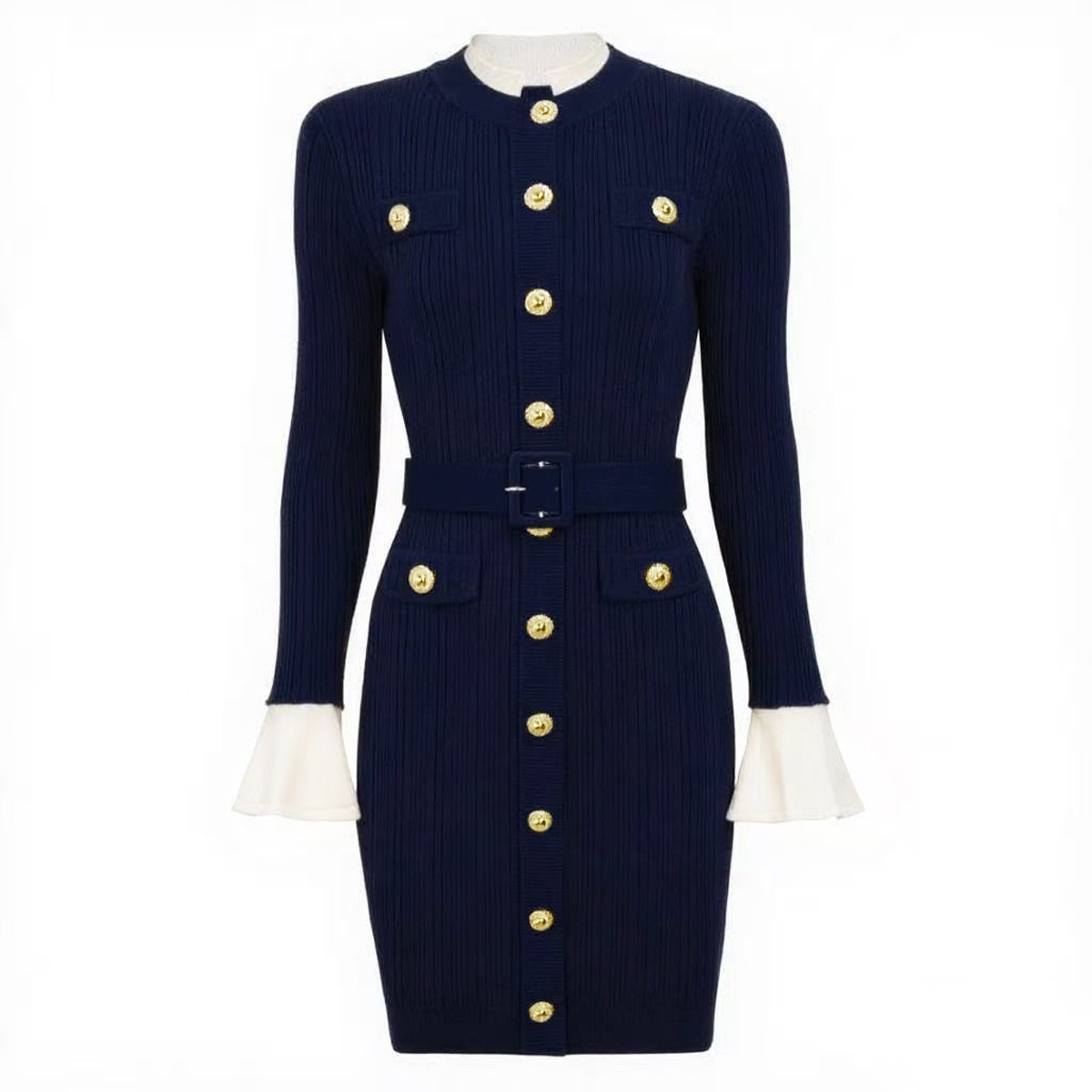 Long-sleeved, Round Neck, Belted, Knitted, Versatile, Slimming, Short Dress