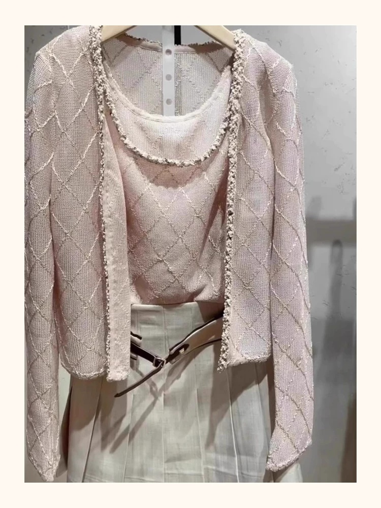 French Style Small Fragrant Pink Knitwear Suspender Two-Piece Suit For Women Early Spring Unique And Super Nice Top