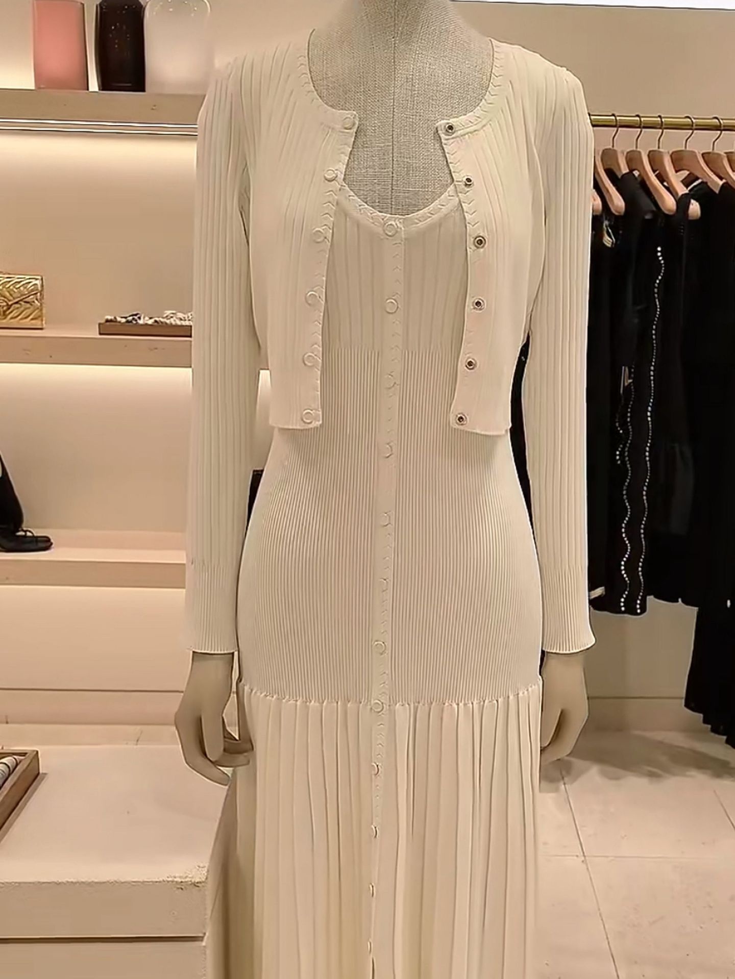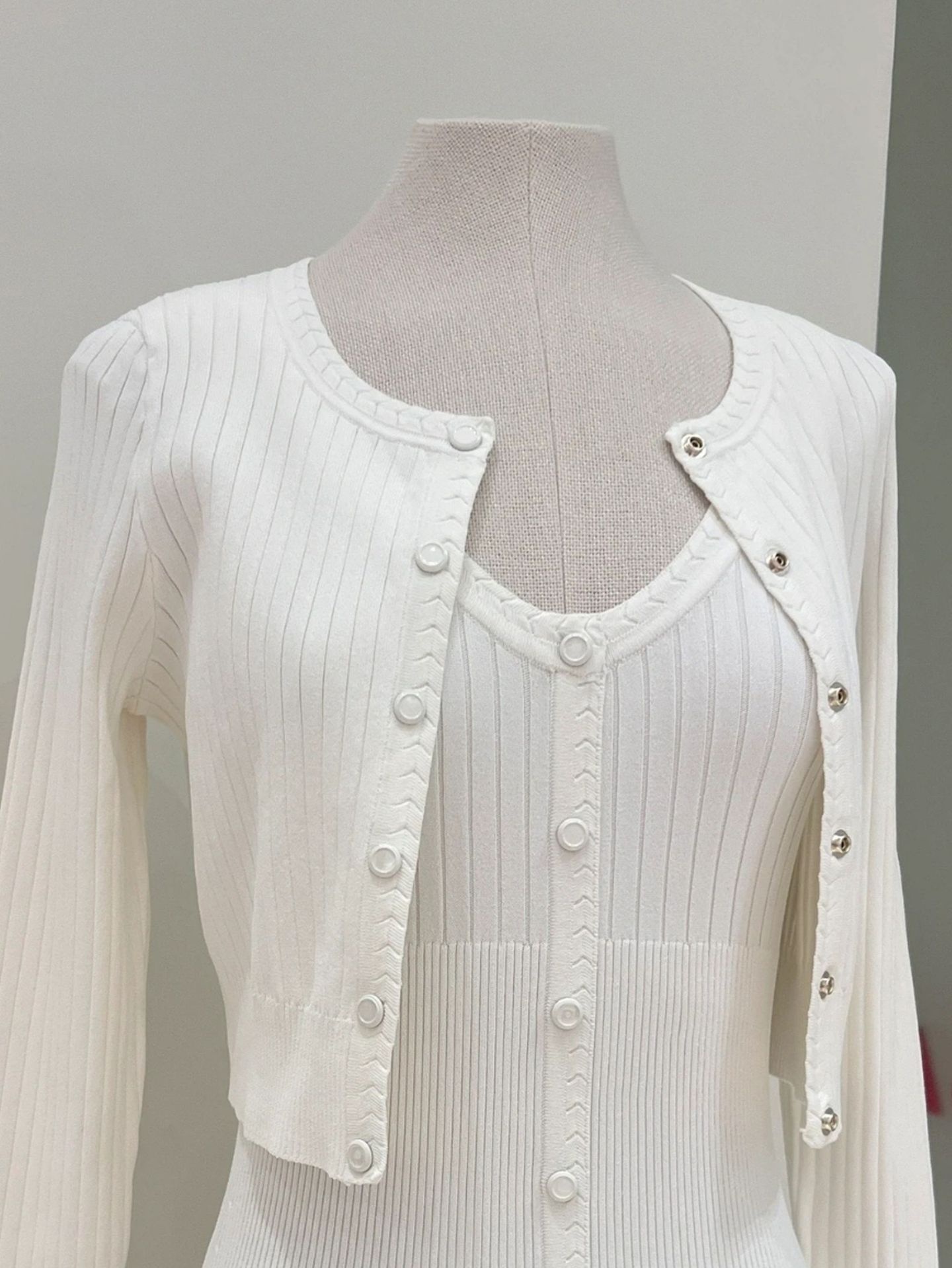 French-style Elegant Fitted Long Suspender Knit Dress + Knit Cardigan