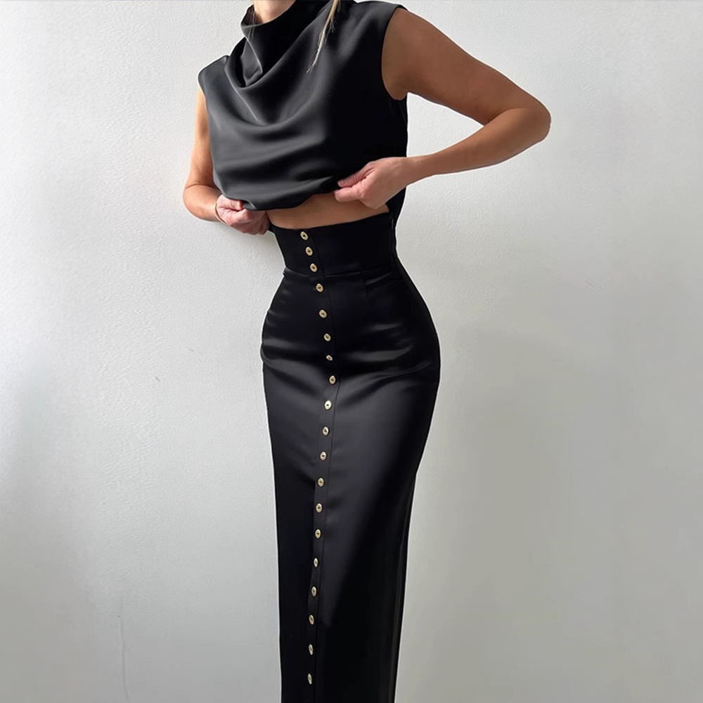 Casual And Elegant Button-down Top And Skirt Suit For Women