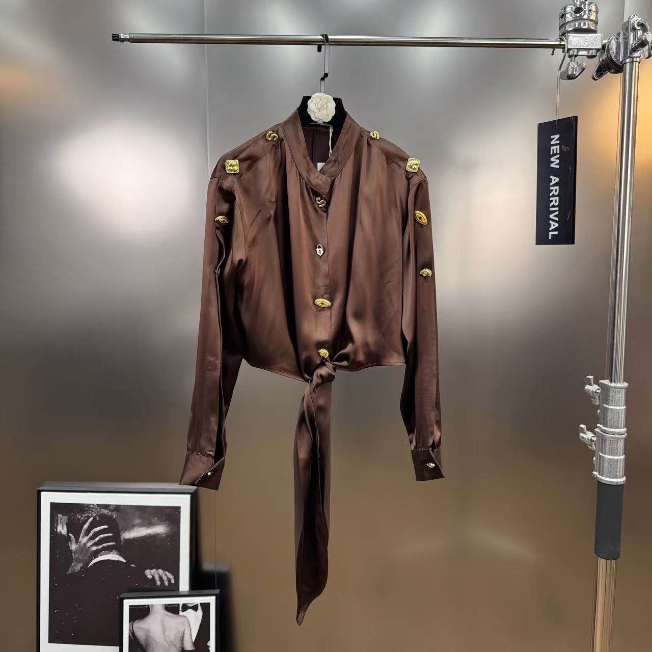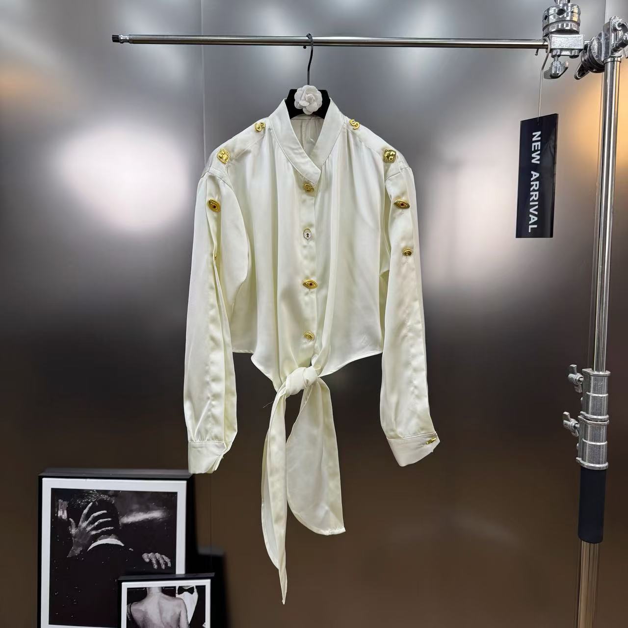 Versatile, Slimming, Retro-style Metallic Button Design, Y French-style Shirt