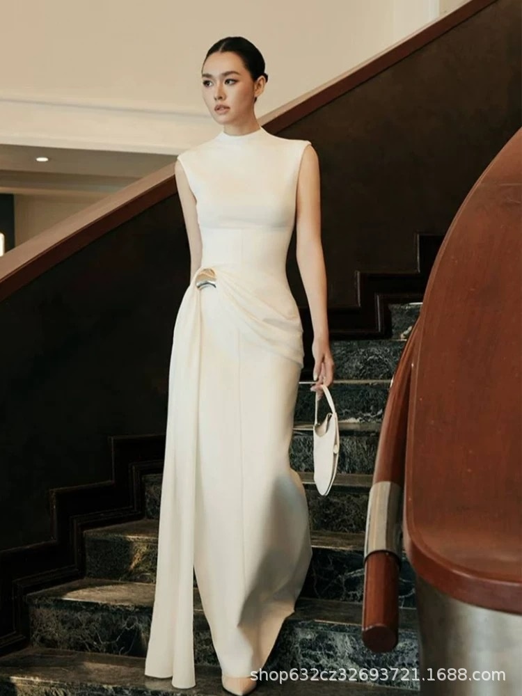 High-End, Luxurious, Light And Luxurious Simple Dress For Women, Summer French Elegant And Elegant Waist Slimming Banquet Dress