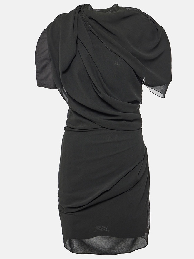 Mesh-paneled, Draped, Pleated, Padded-shoulder, Backless, Puff-sleeved, Faux Two-piece Mini Dress