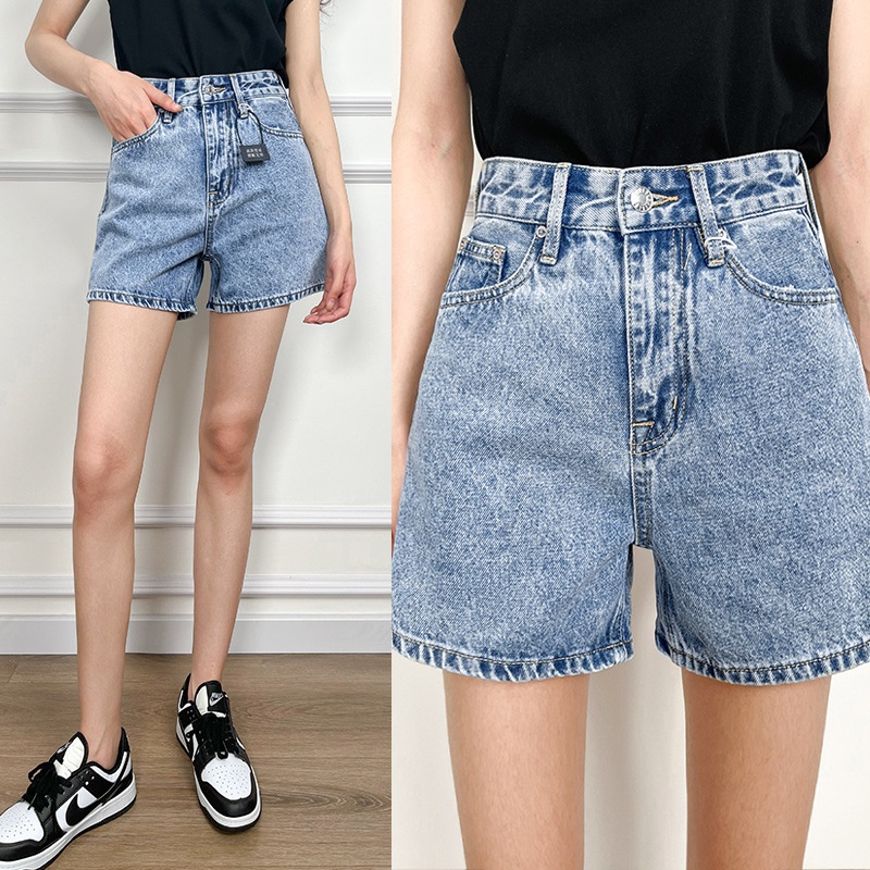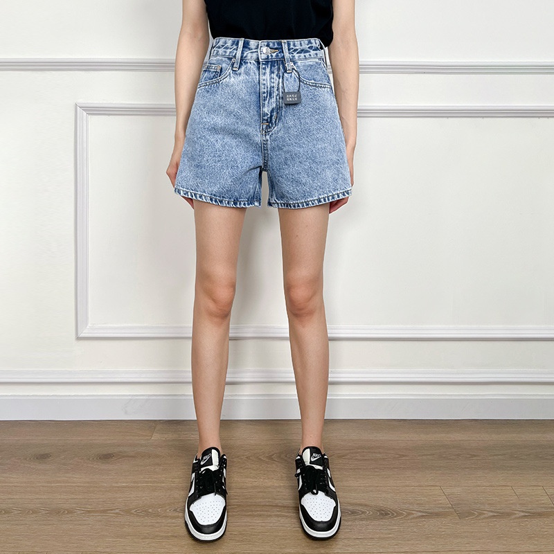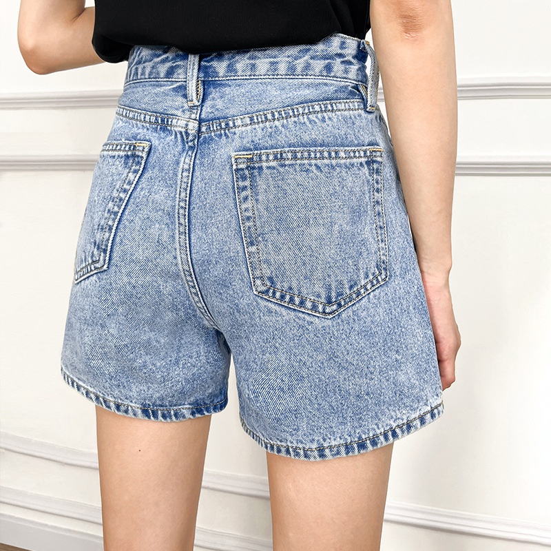 Washed-out High-waisted Denim Shorts For Pear-shaped Figures
