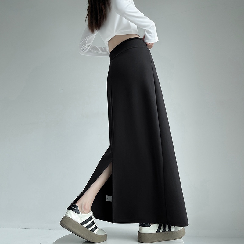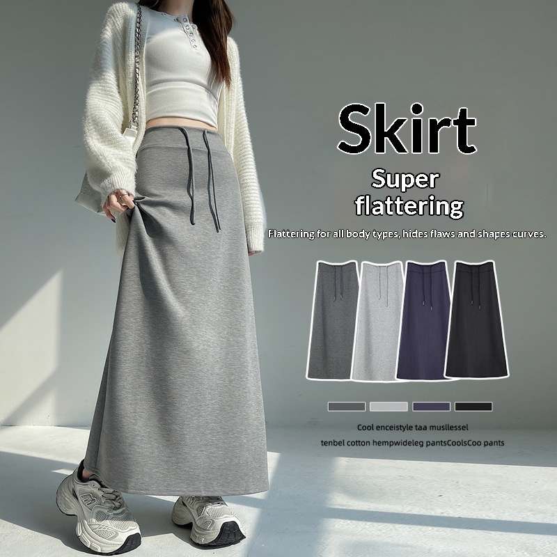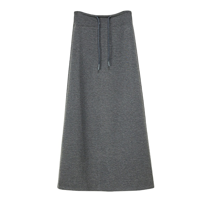 Grey Sporty High-waisted Straight A-line Midi Skirt With Slits, Flowy And Long.
