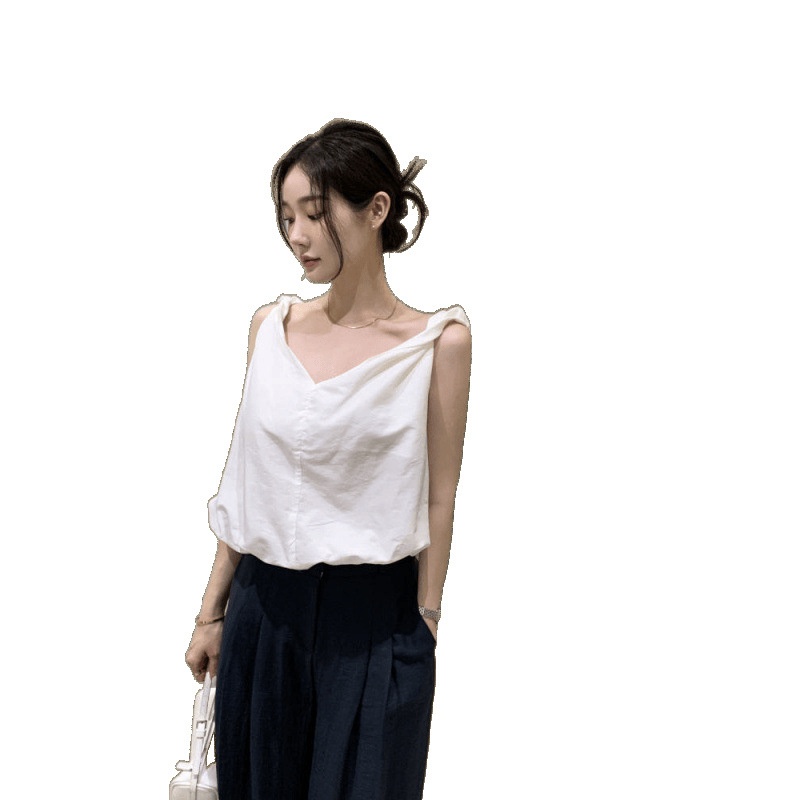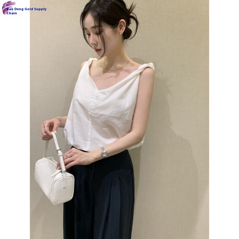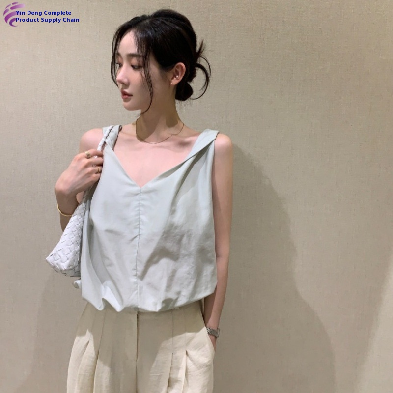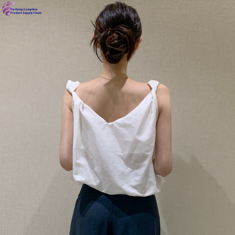 Simple V-neck Suspender Top With Twisted Knot Vest