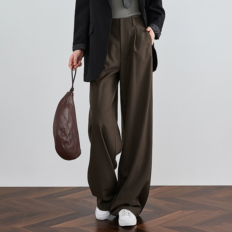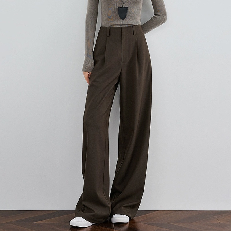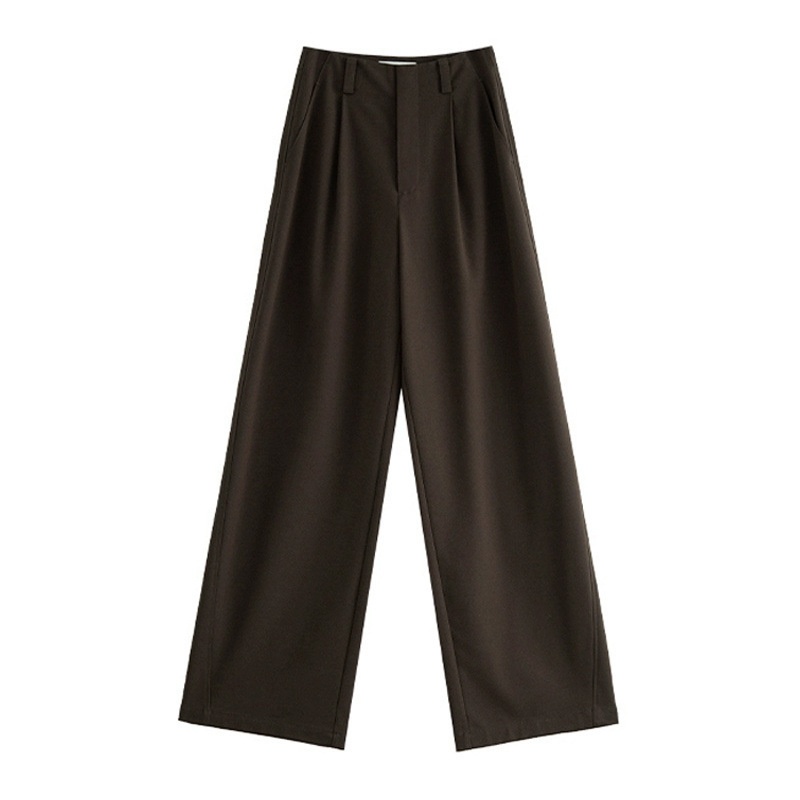 Pottery Brown Suit Pants With Waist Design Trousers, Drapey Floor-length Pants, Loose Wide-leg Pants