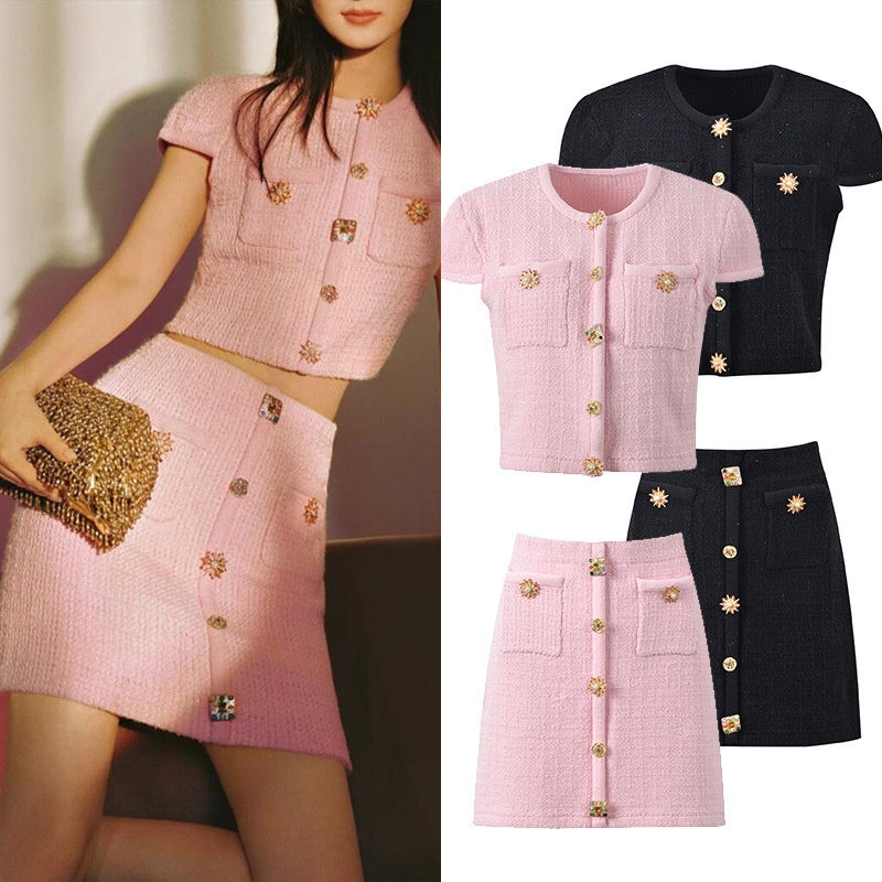 Elegant Lady Diamond Buckle Slim Fit Short Top Skirt