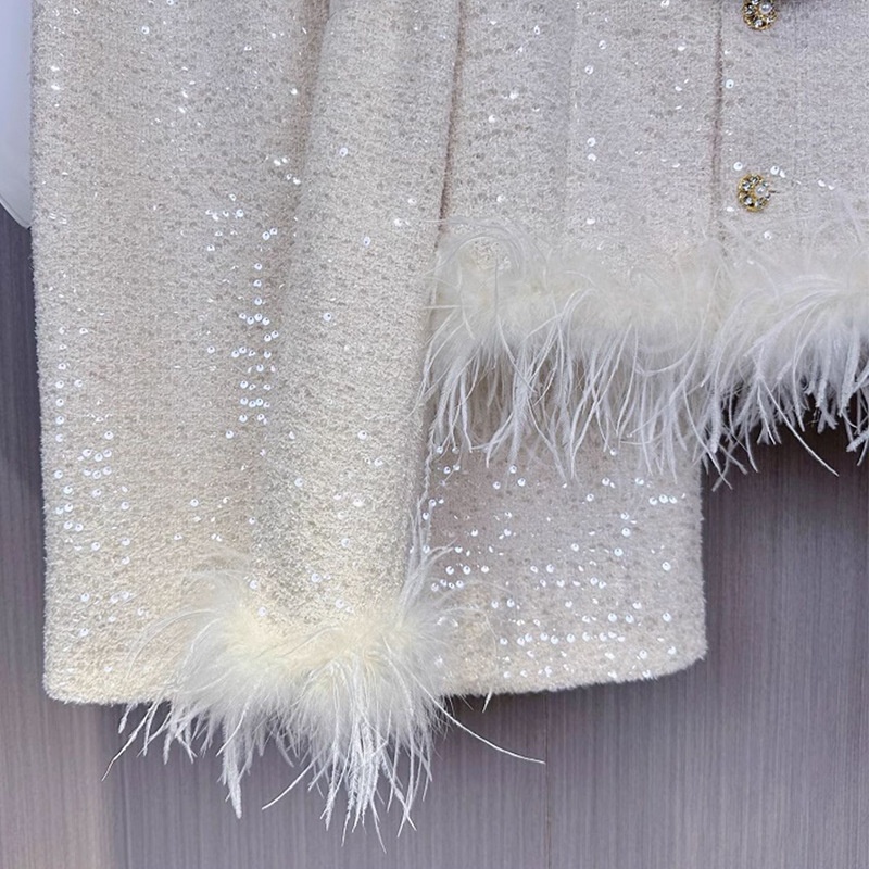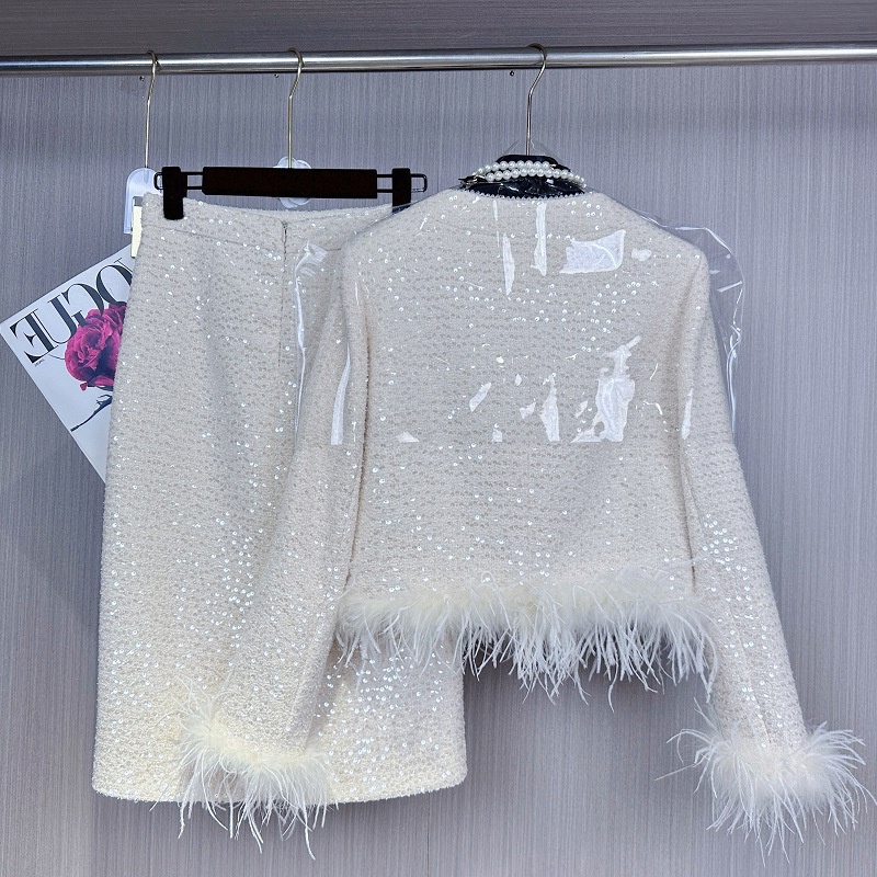 Celebrity Elegant French Style Suit For Women Furry Short Outwear + Skirt Two-Piece Set