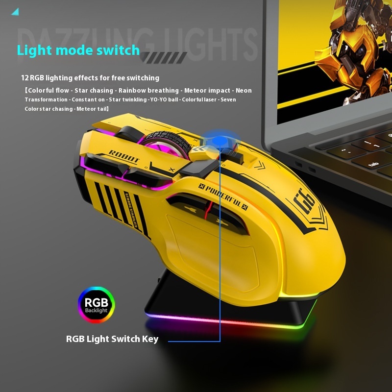 G6 Bluetooth Three-mode Wireless Mouse RGB Gaming Computer Silent Type-c Charging Wired Mechanical Mouse