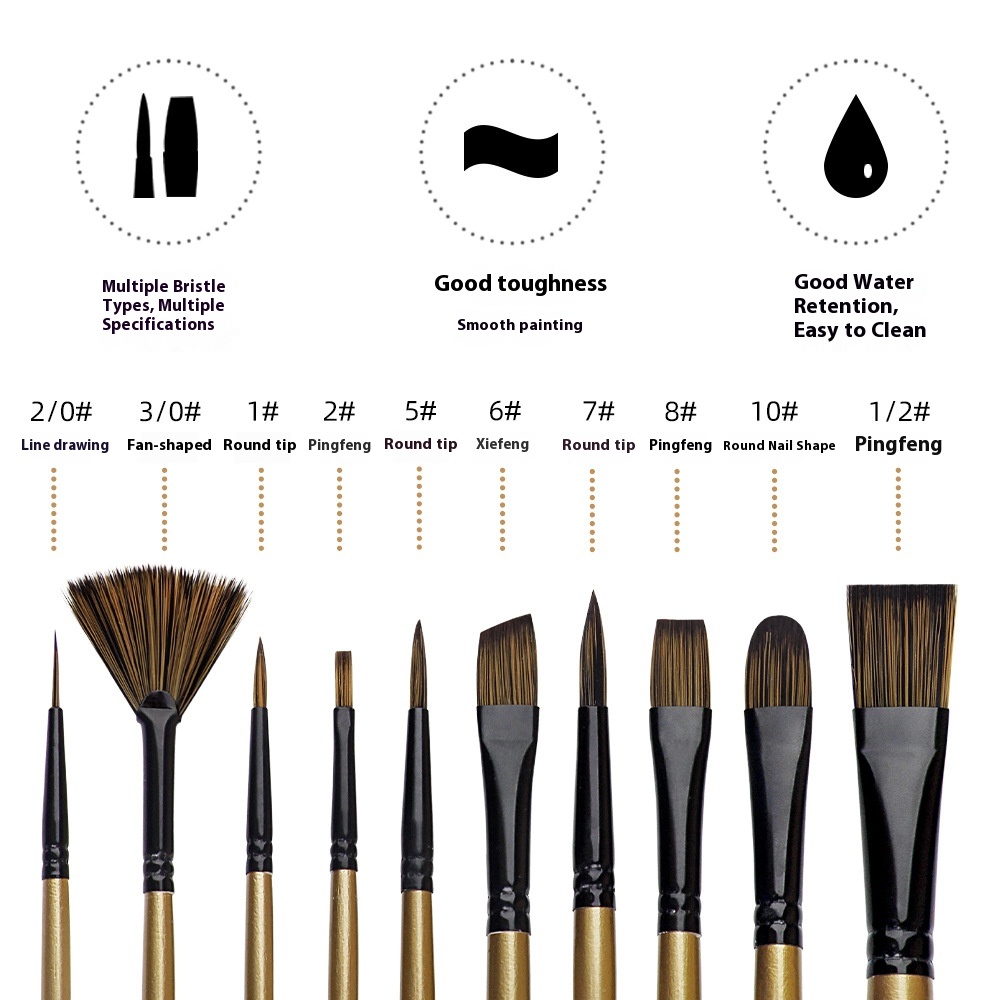 10 Oil Paint Brush Set Mixed Head Art Student Nylon Painting Brush Wooden Brush Watercolor Gouache Acrylic Brush